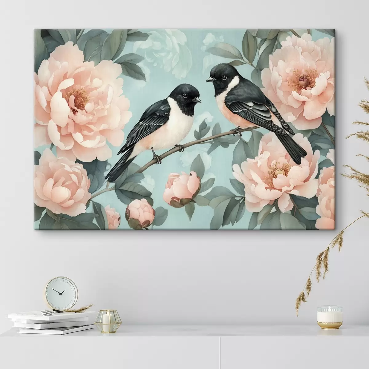 Картина Дві пташки на гілці з півоніями Арт. s44786