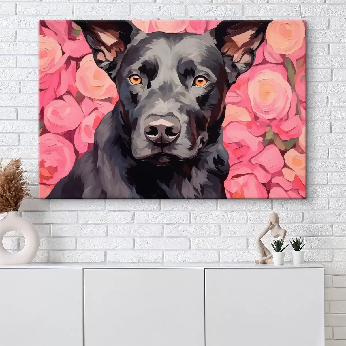 Картина Чорний пес на тлі абстрактних троянд Арт. s44817