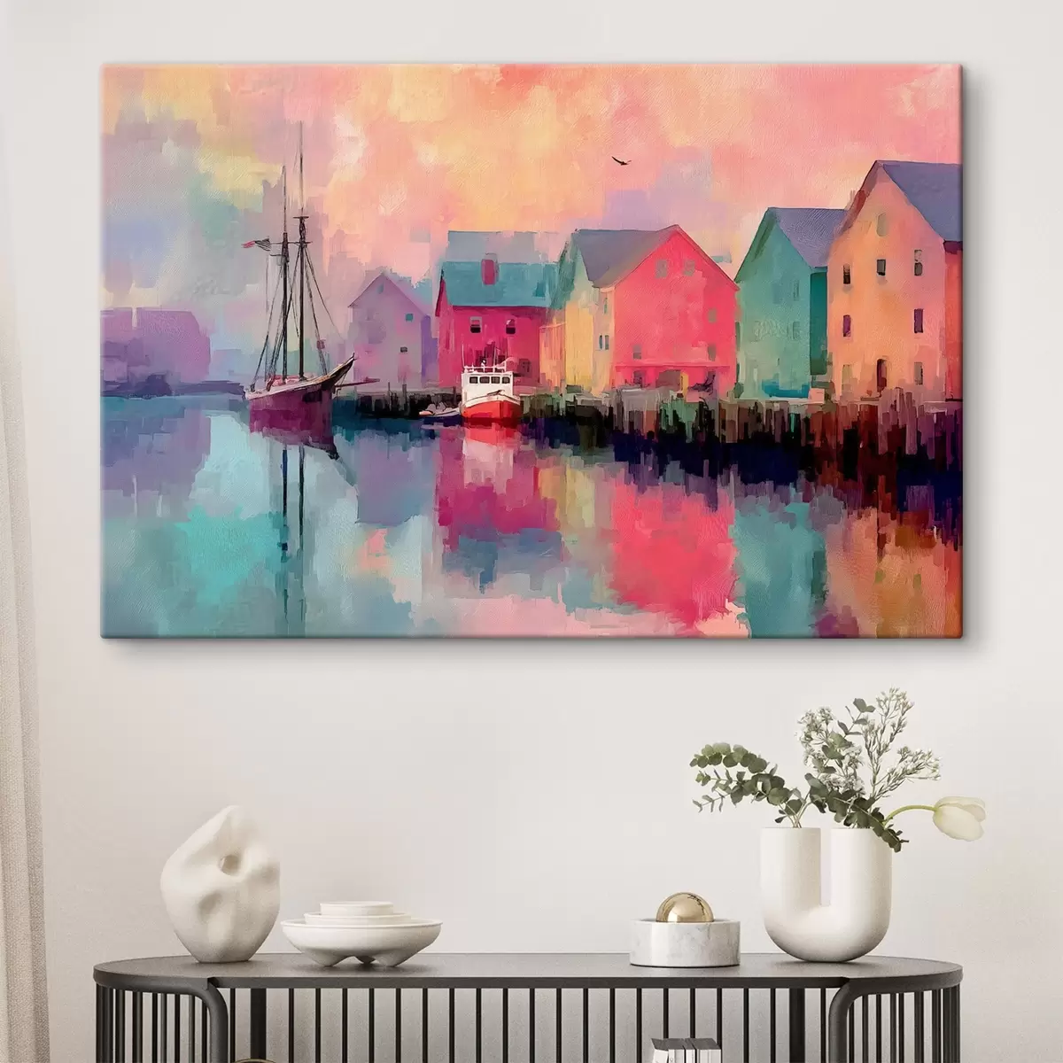 Картина Кольорові будиночки біля води в стилі мазків Арт. s44837