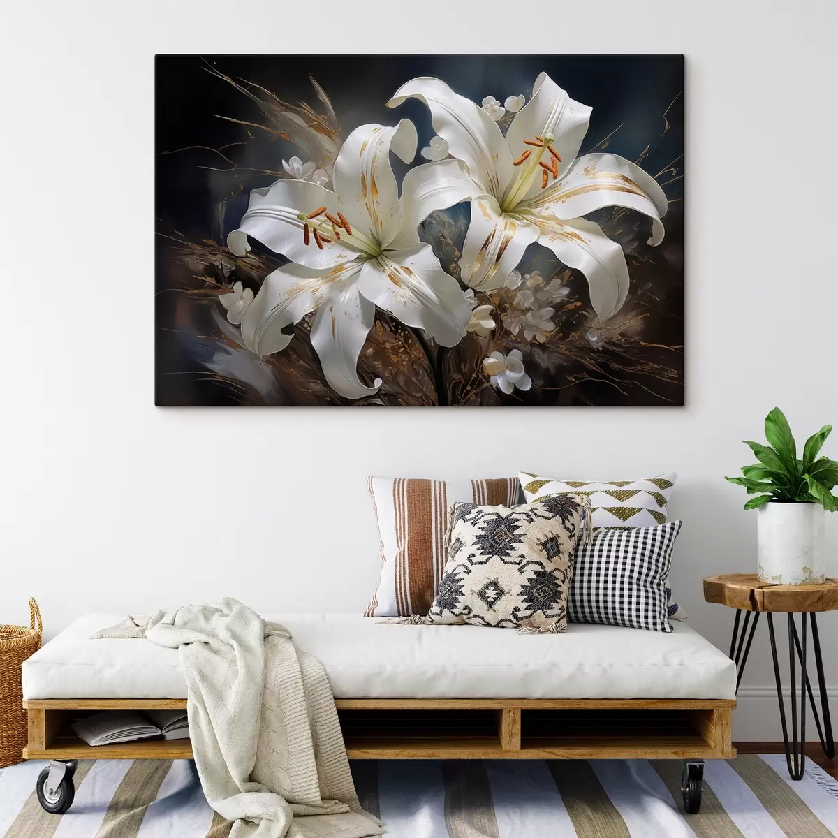 Картина Квіти лілії на темному тлі з декоративними елементами s44848
