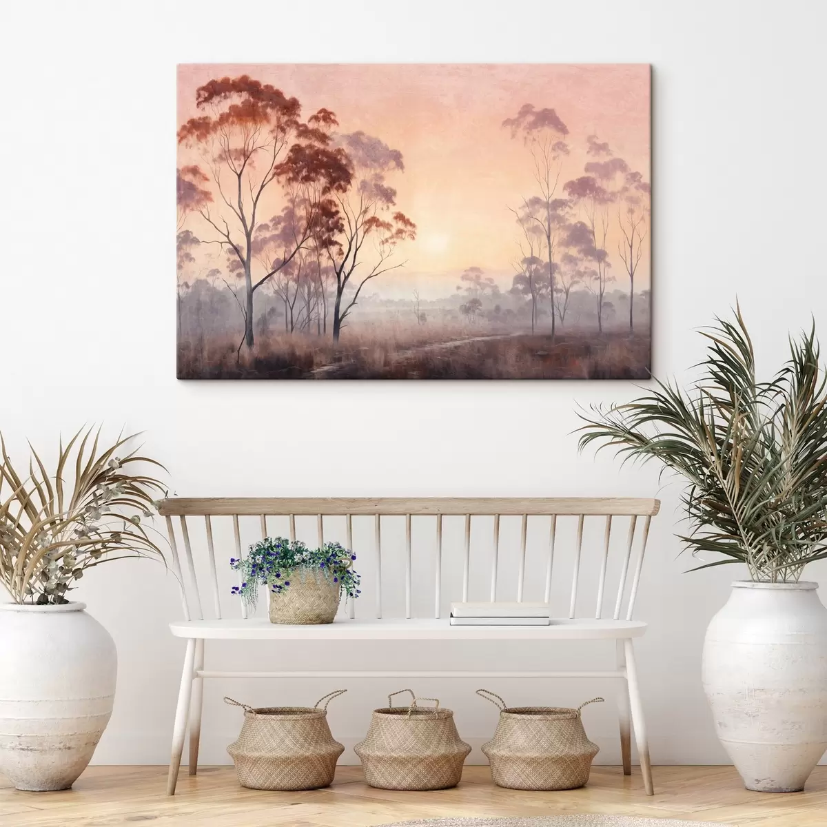 Картина Пейзажна картина поля з високою травою та деревами, сонце на задньому плані Арт. s44854