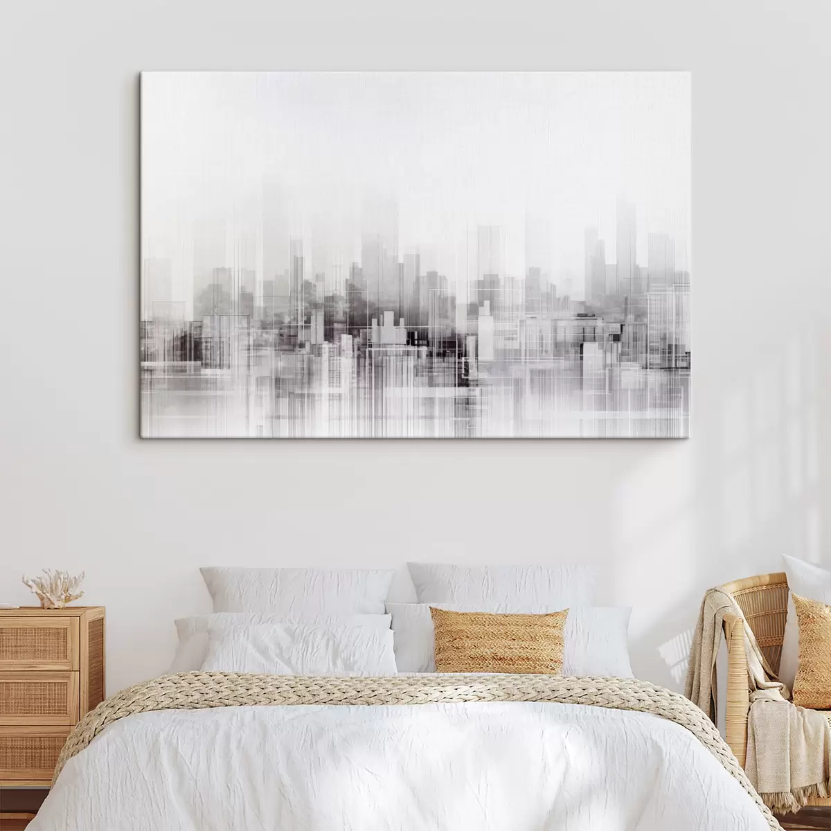 Картина Текстурований мінімалістичний міський пейзаж з високими будівлями та хмарочосами на тлі білого неба Арт. s44863