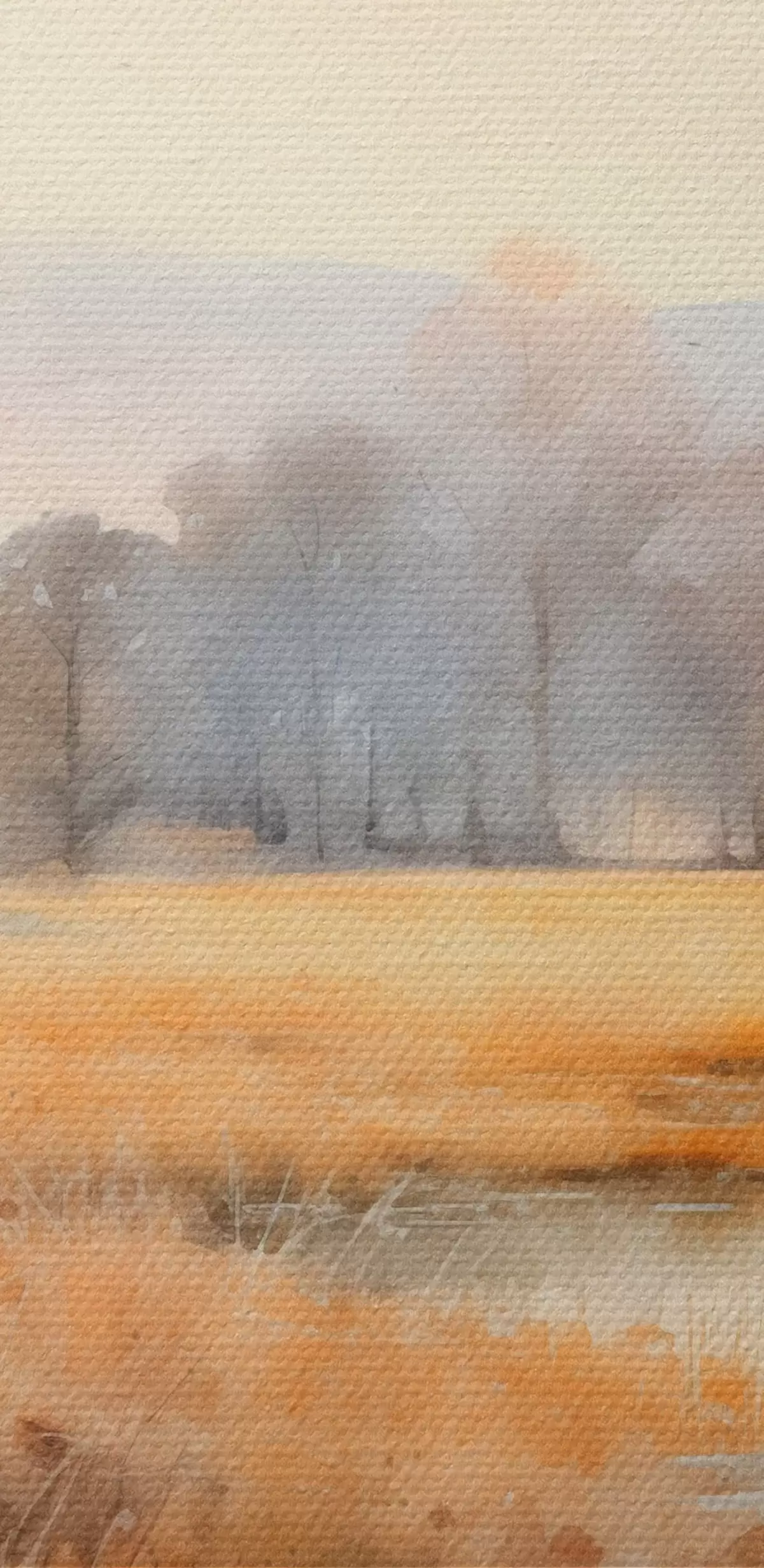 Картина Спокійний фактурний пейзажний живопис, що імітує очерет і голі дерева, спокійну воду під небом Арт. s44867