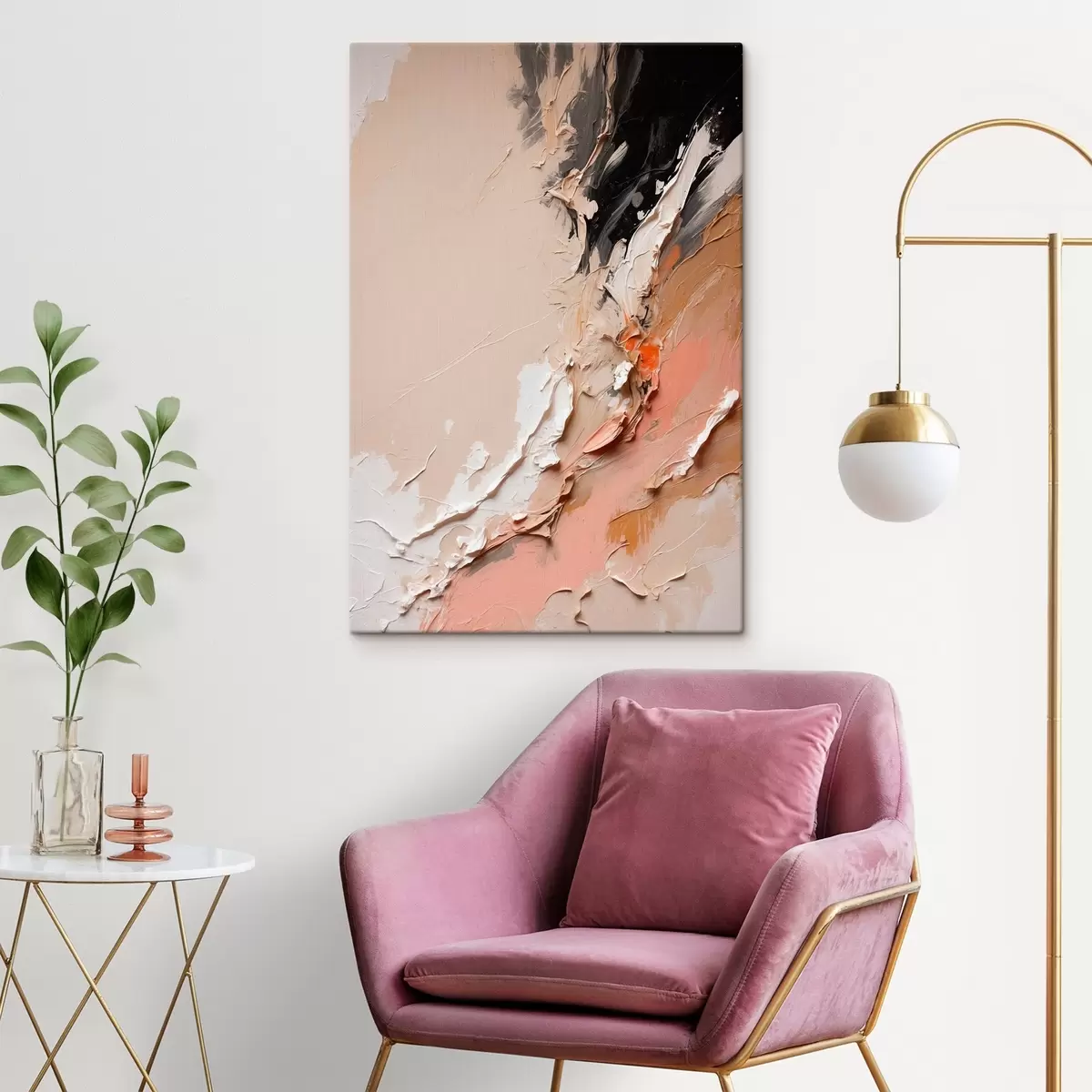 Картина Бежево-чорна абстракція з акцентами рожевого та білого Арт. s44875