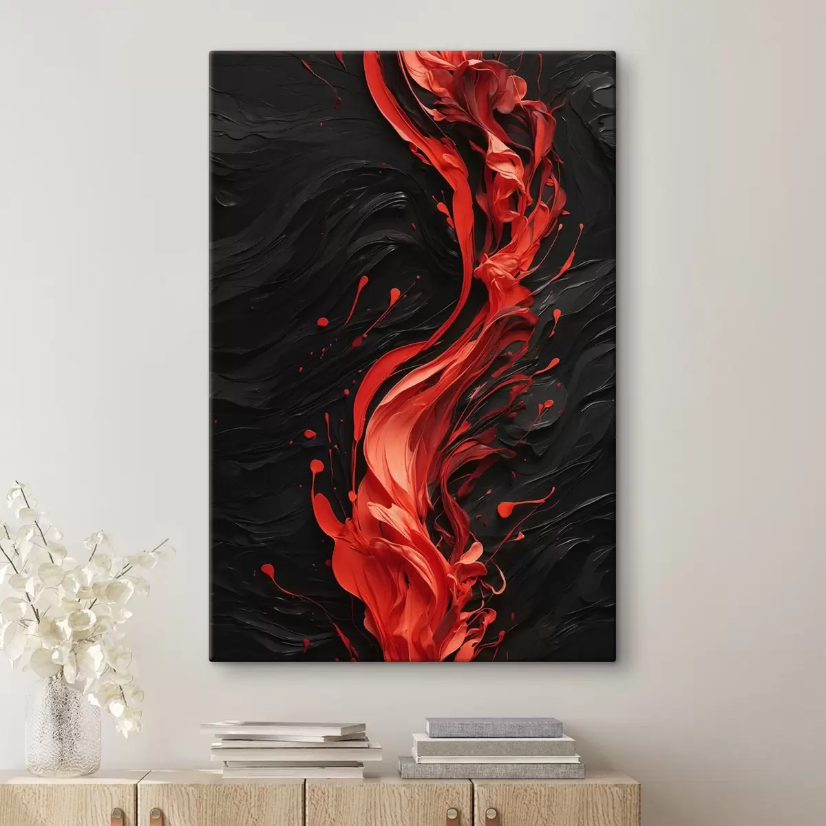 Картина Червоний потік фарби на чорному абстрактному тлі Арт. s44889