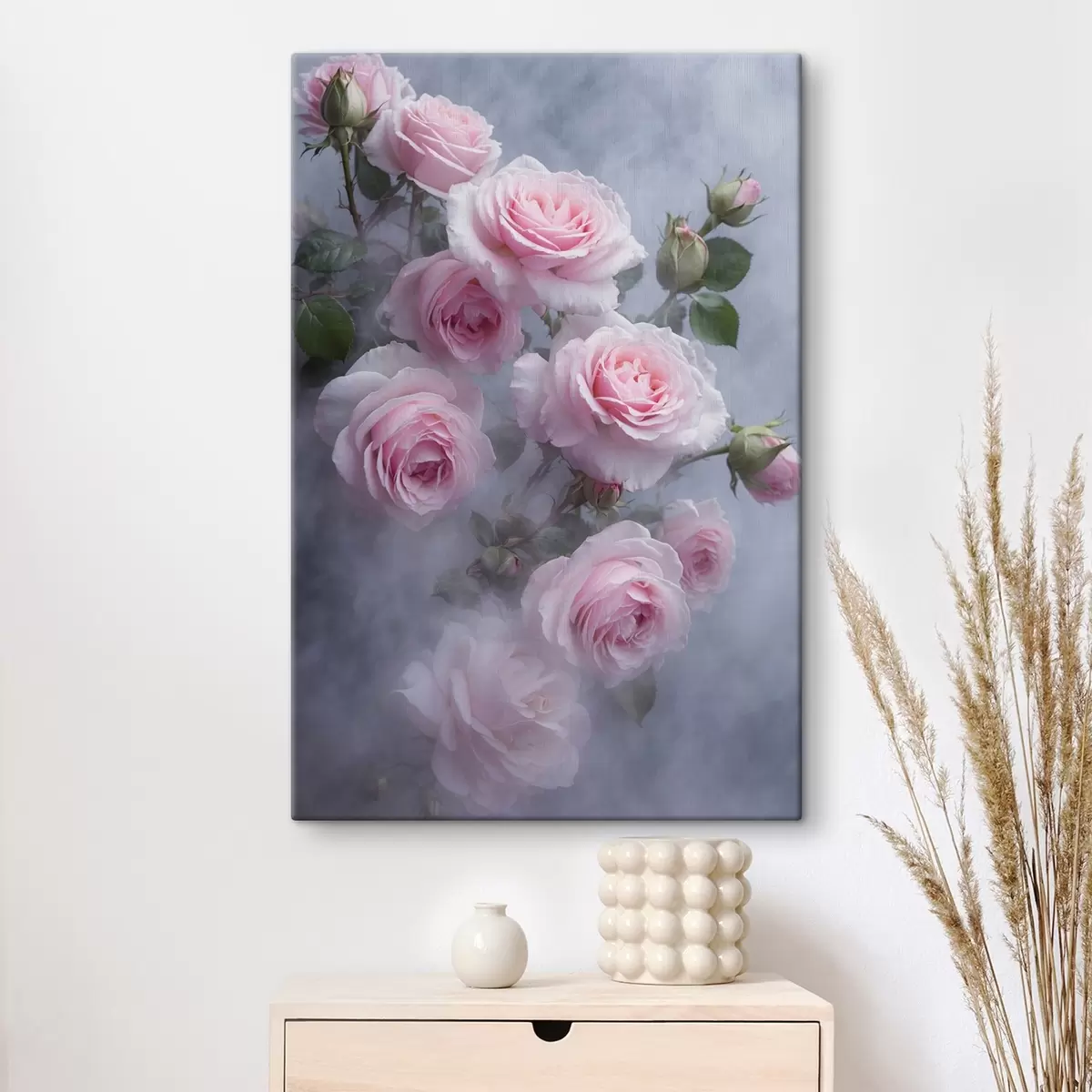 Картина Ніжно-рожеві троянди в тумані з зеленим листям Арт. s44892