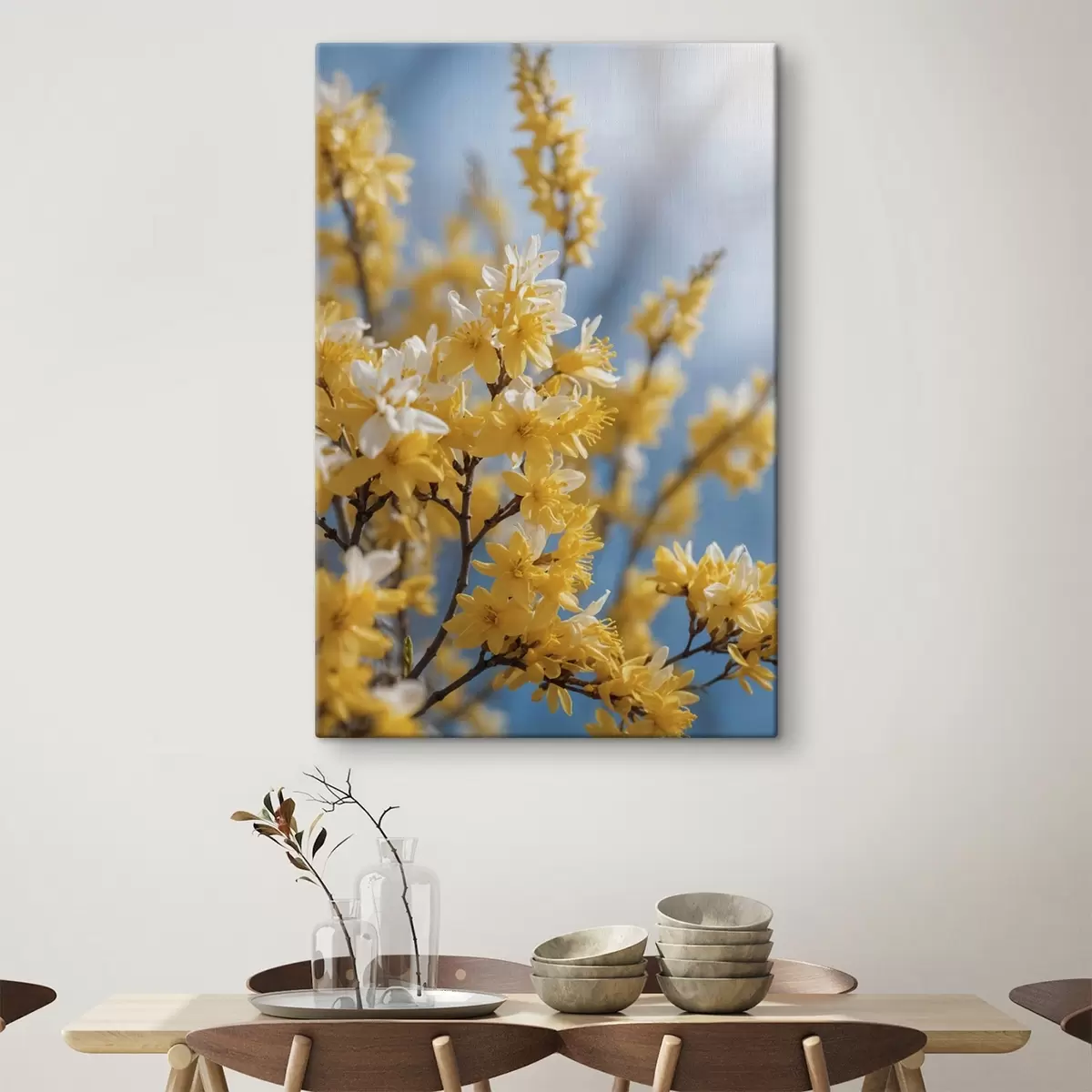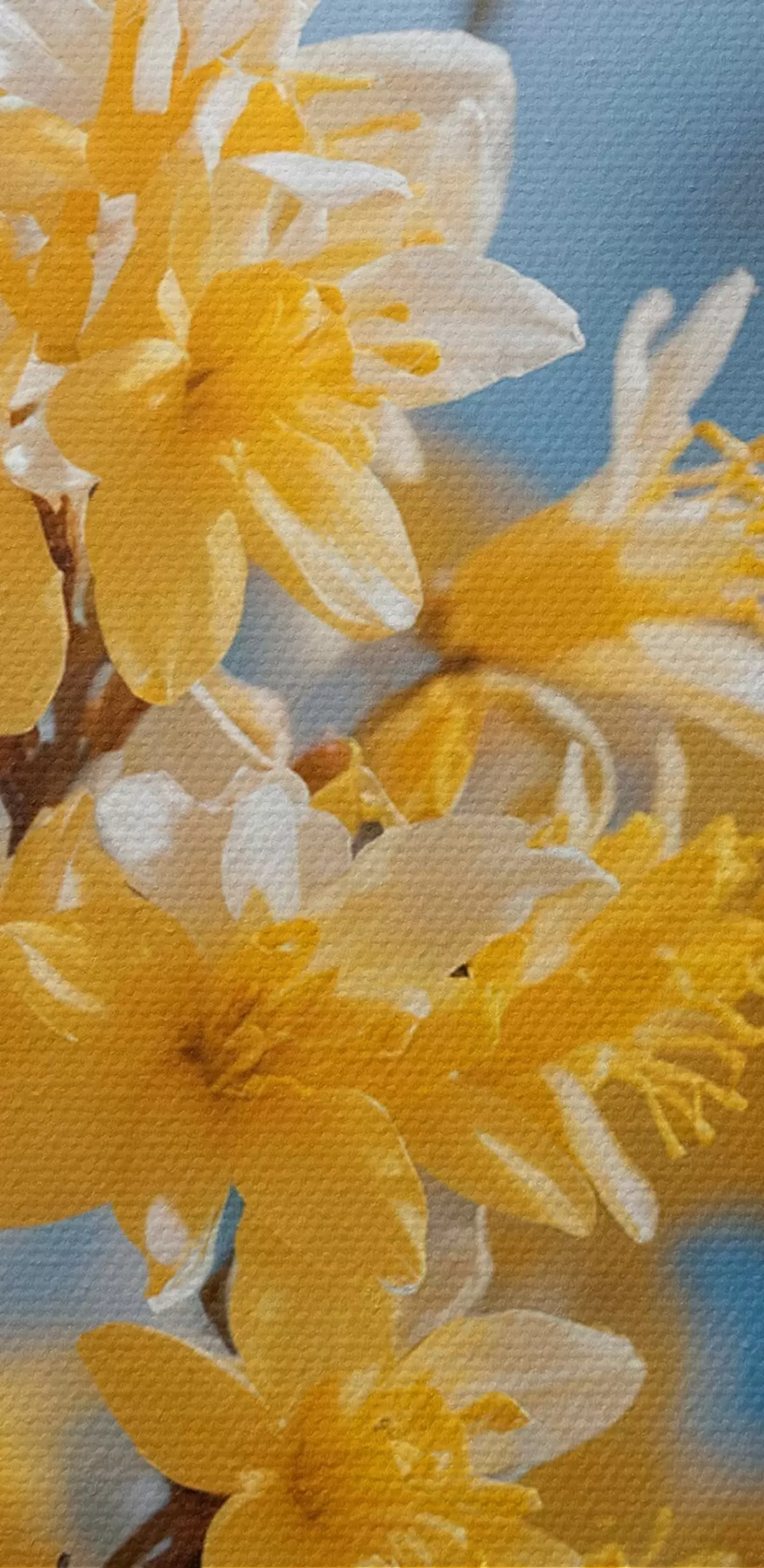 Картина Жовті квіти на синьому тлі з м'яким фокусом s44894