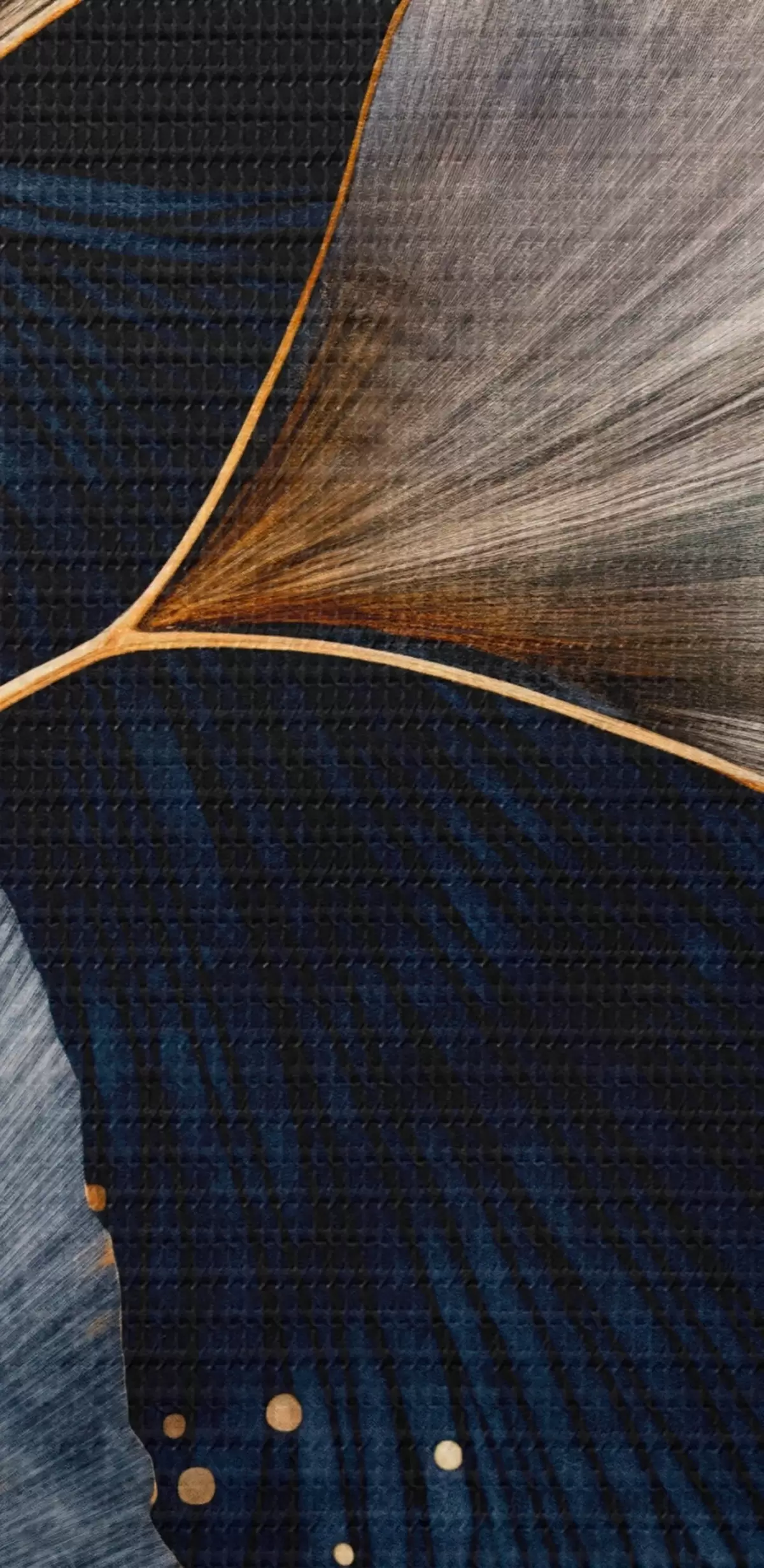 Картина Листя гінкго в жовто-блакитних тонах, елегантний темний фон, сучасне мистецтво, мінімалістичний стиль, натхненний природою Арт. s44921