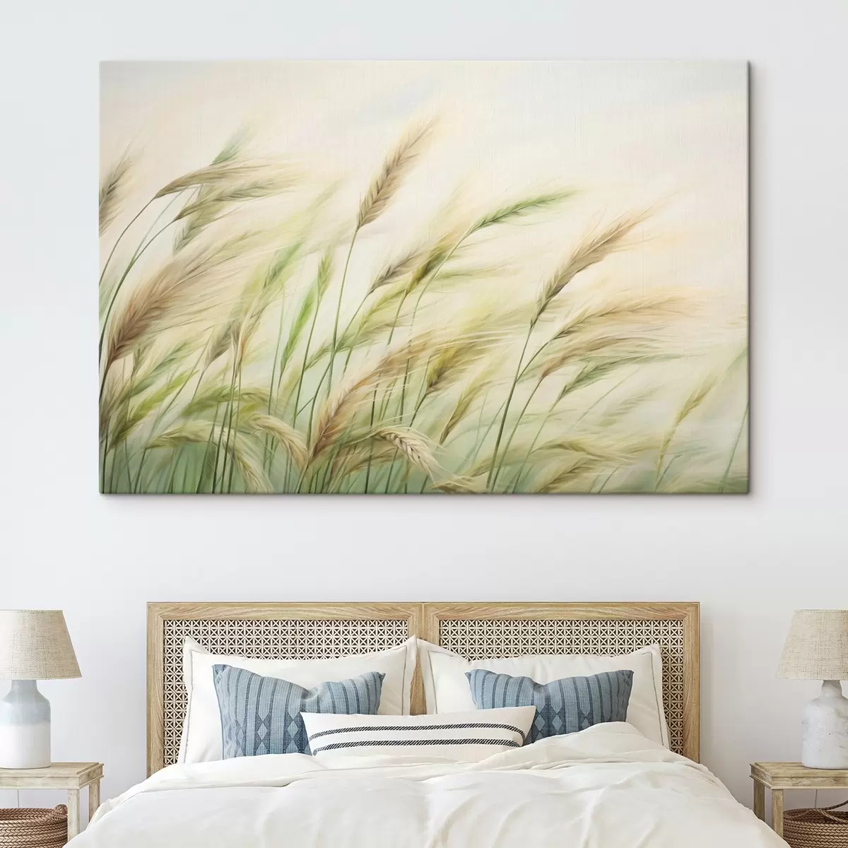 Картина Пшеничне поле з жовтими та зеленими колосками, м'які мазки та світла палітра кольорів, природна атмосфера s44923