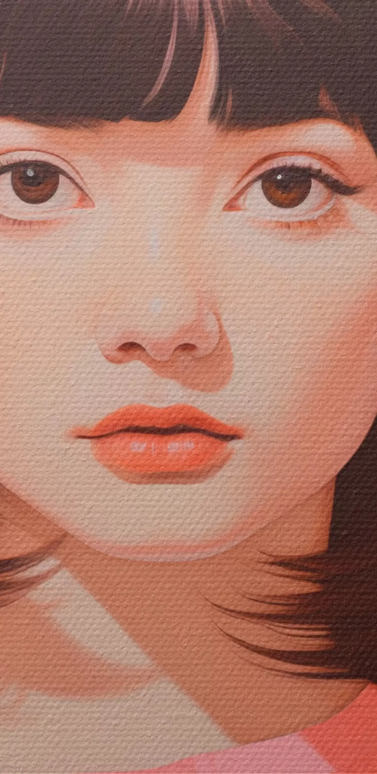 Картина Декоративний мінімалістичний портрет азіатської дівчини на тлі жовтих і рожевих квітів s44924