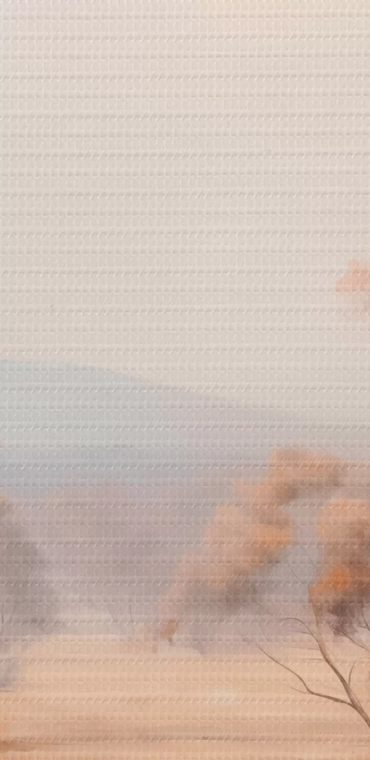 Картина Поле з помаранчевою травою і кілька дерев з помаранчевим листям, гори на задньому плані з хмарним небом s44927
