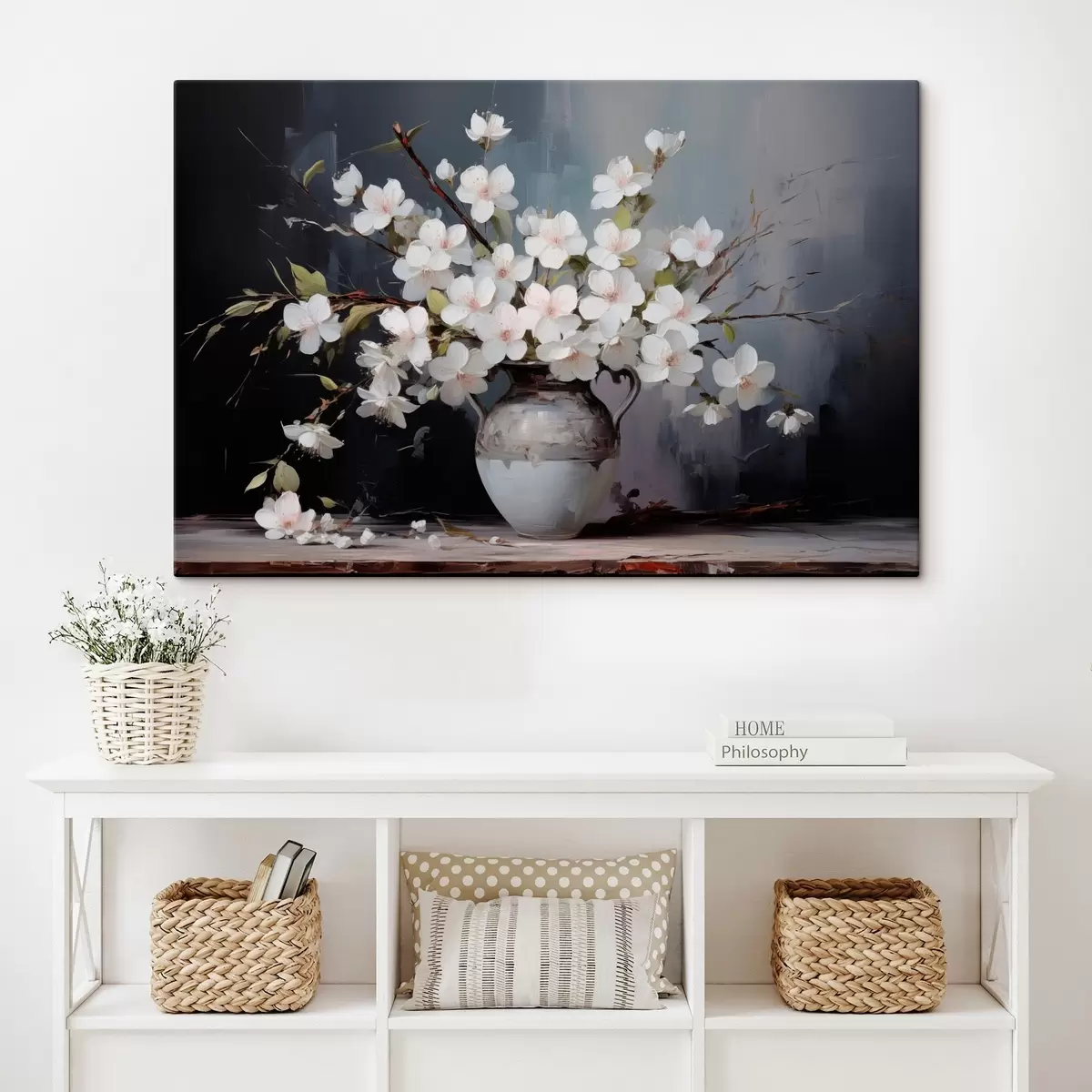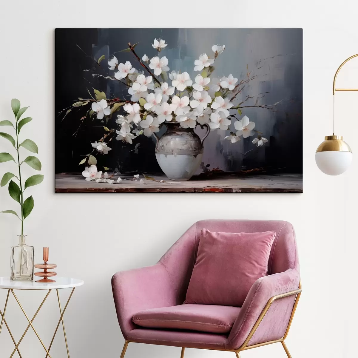 Картина Квітучі гілки у вазі на темному тлі в мальовничому стилі Арт. s44949