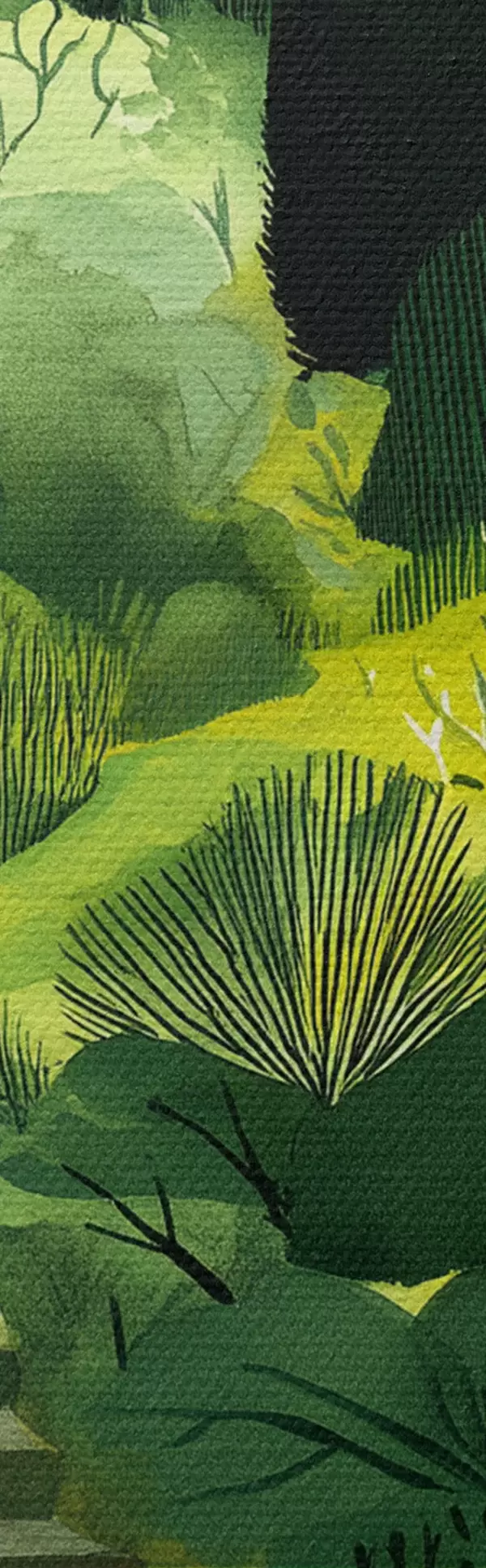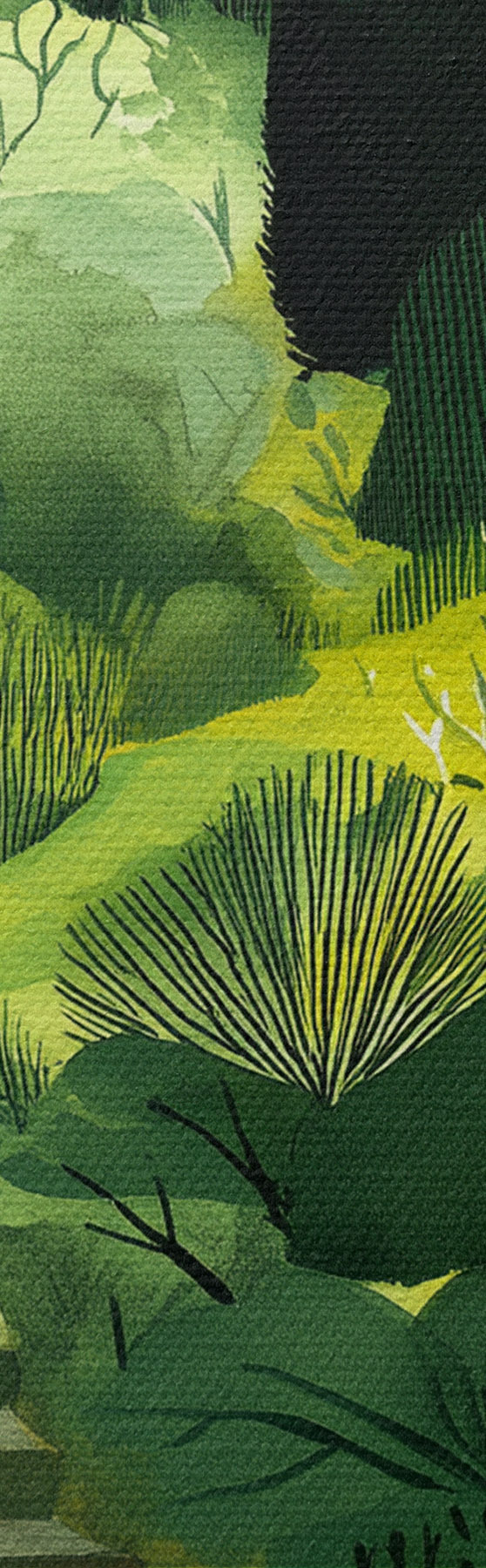 Картина Зелені пагорби з деревами та кущами, бетонні сходи, соковиті кольори Арт. s44980