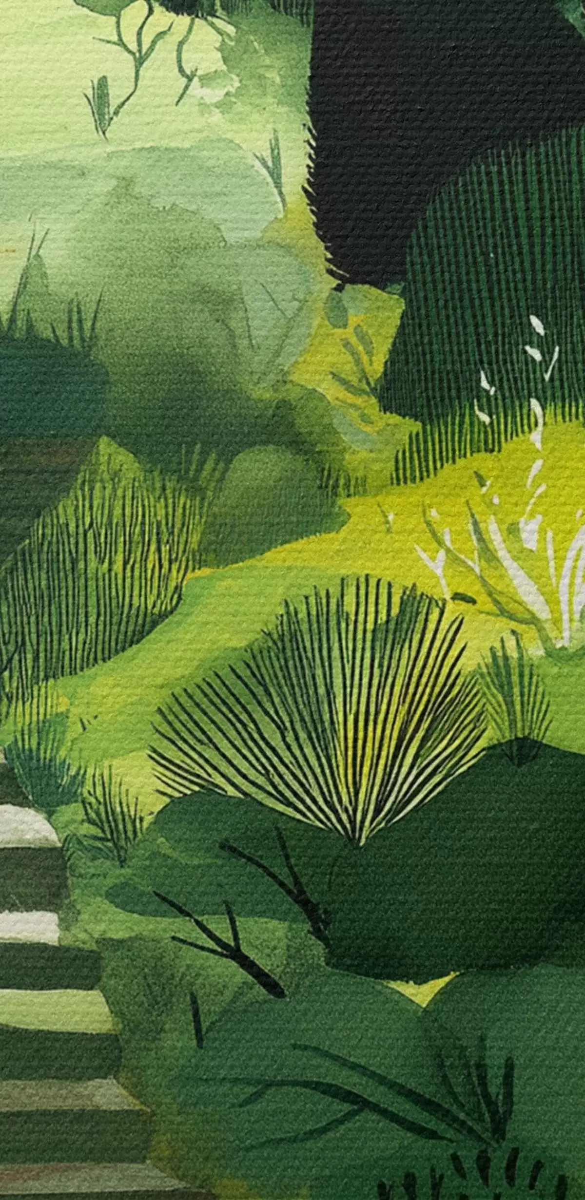 Картина Зелені пагорби з деревами та кущами, бетонні сходи, соковиті кольори s44980