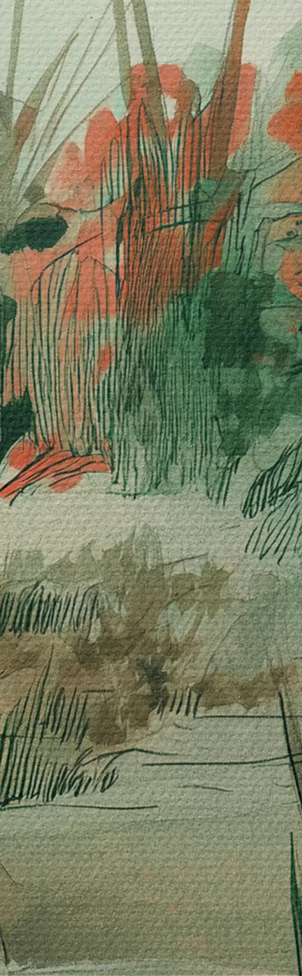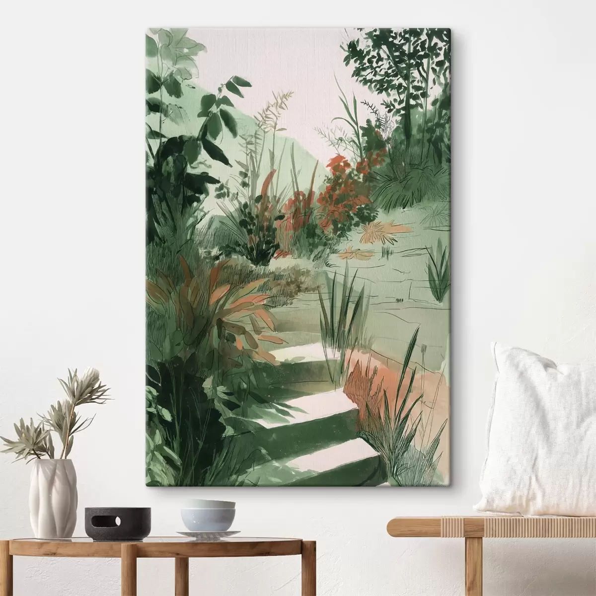 Картина Східний сад з кущами та деревами, зелені кольори Арт. s44982