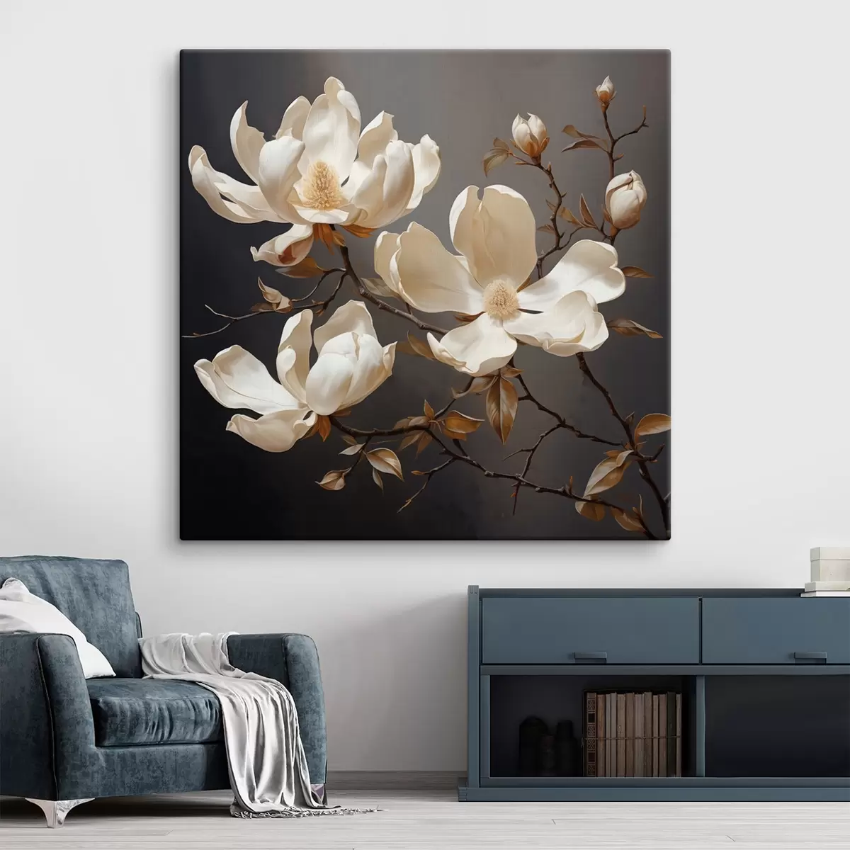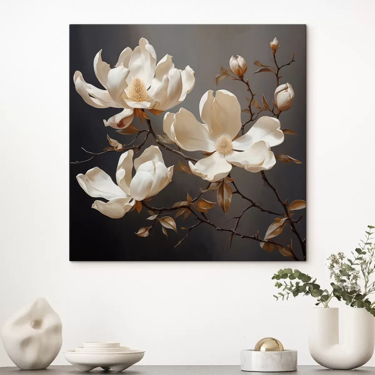 Картина Білі магнолії на темному тлі в живописному стилі Арт. s45038