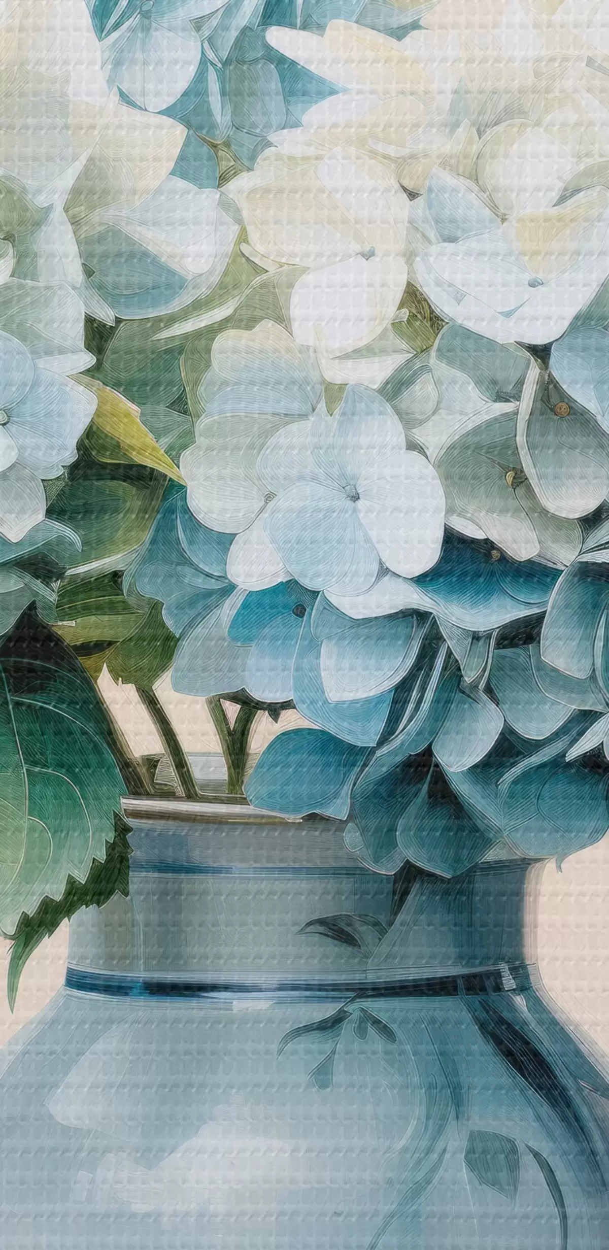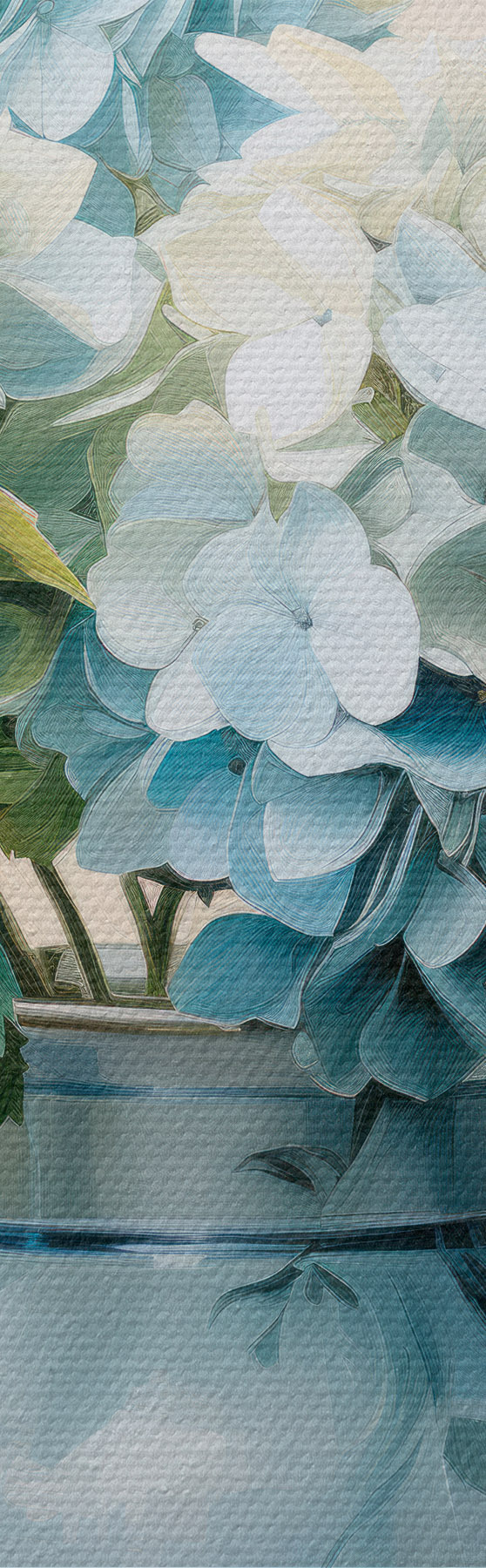 Картина Свіжі гортензії в синій вазі на світлому фоні Арт. s45043