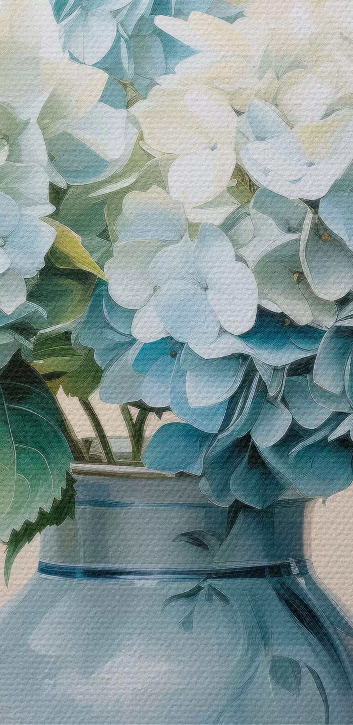 Картина Свіжі гортензії в синій вазі на світлому фоні s45043