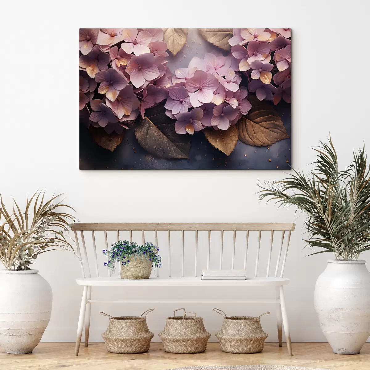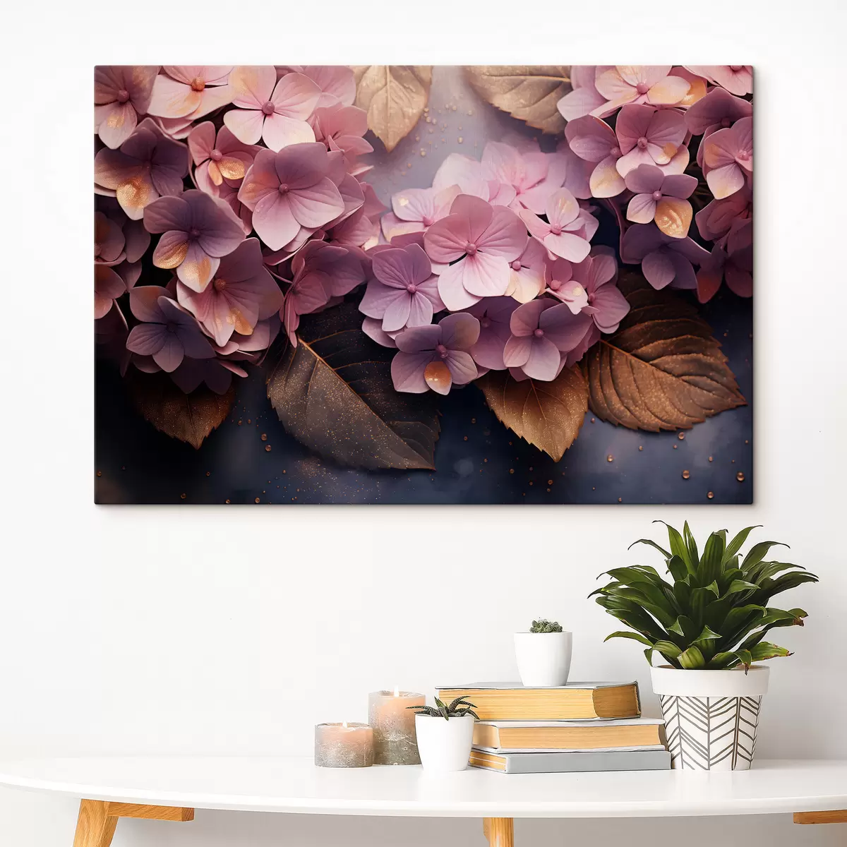 Картина Пишні рожеві гортензії на темному тлі в живописному стилі s45054