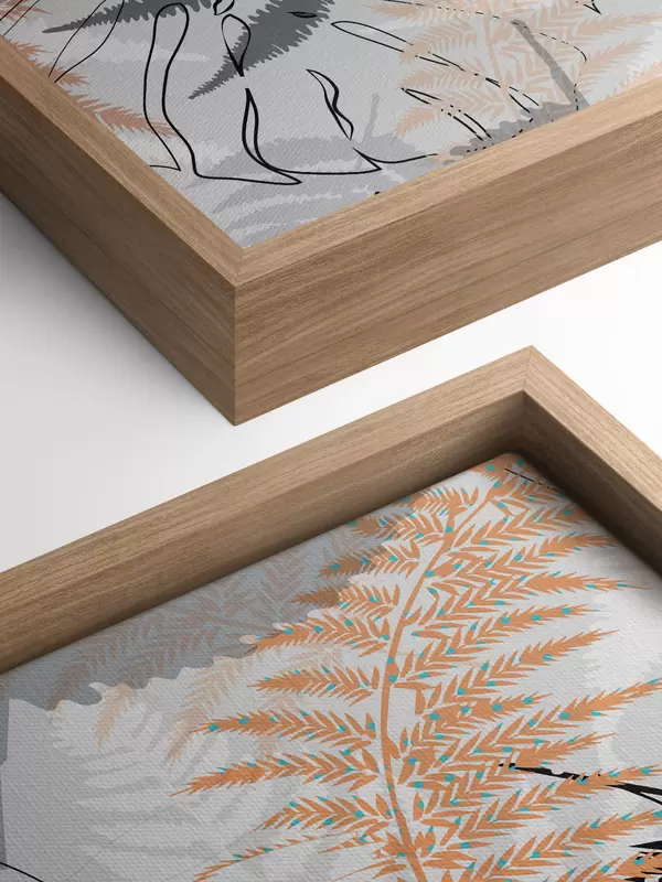 Картина папороть, абстрактне листя, візерунок, плоский дизайн, контраст, сірі тони, ботаніка, накладення s45101