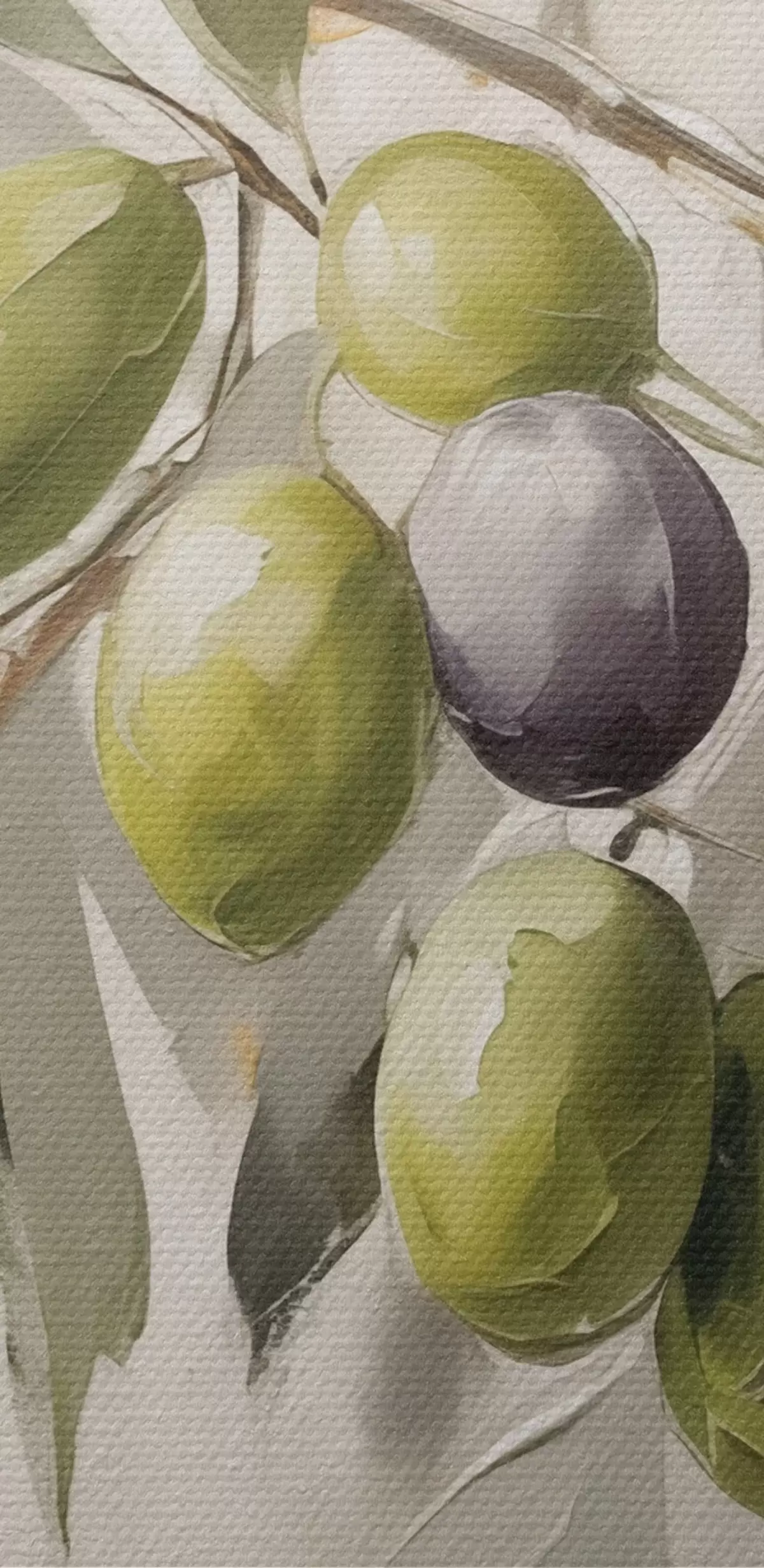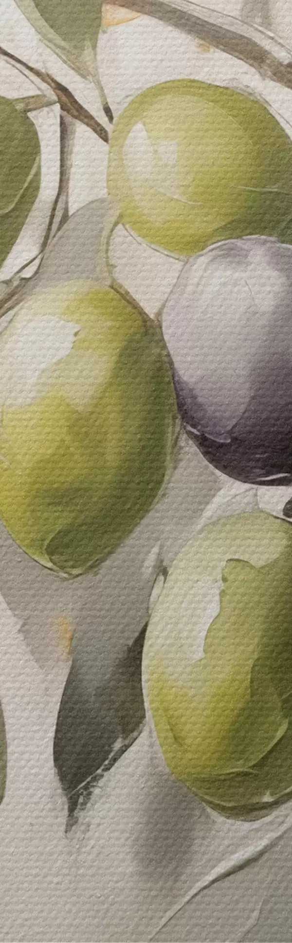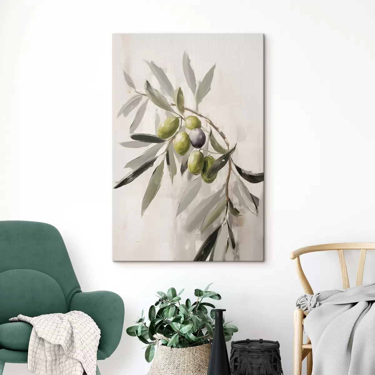 Картина зелені оливки, деталь гілки, світлий фон, органічний, натуральна палітра, сільський Арт. s45110