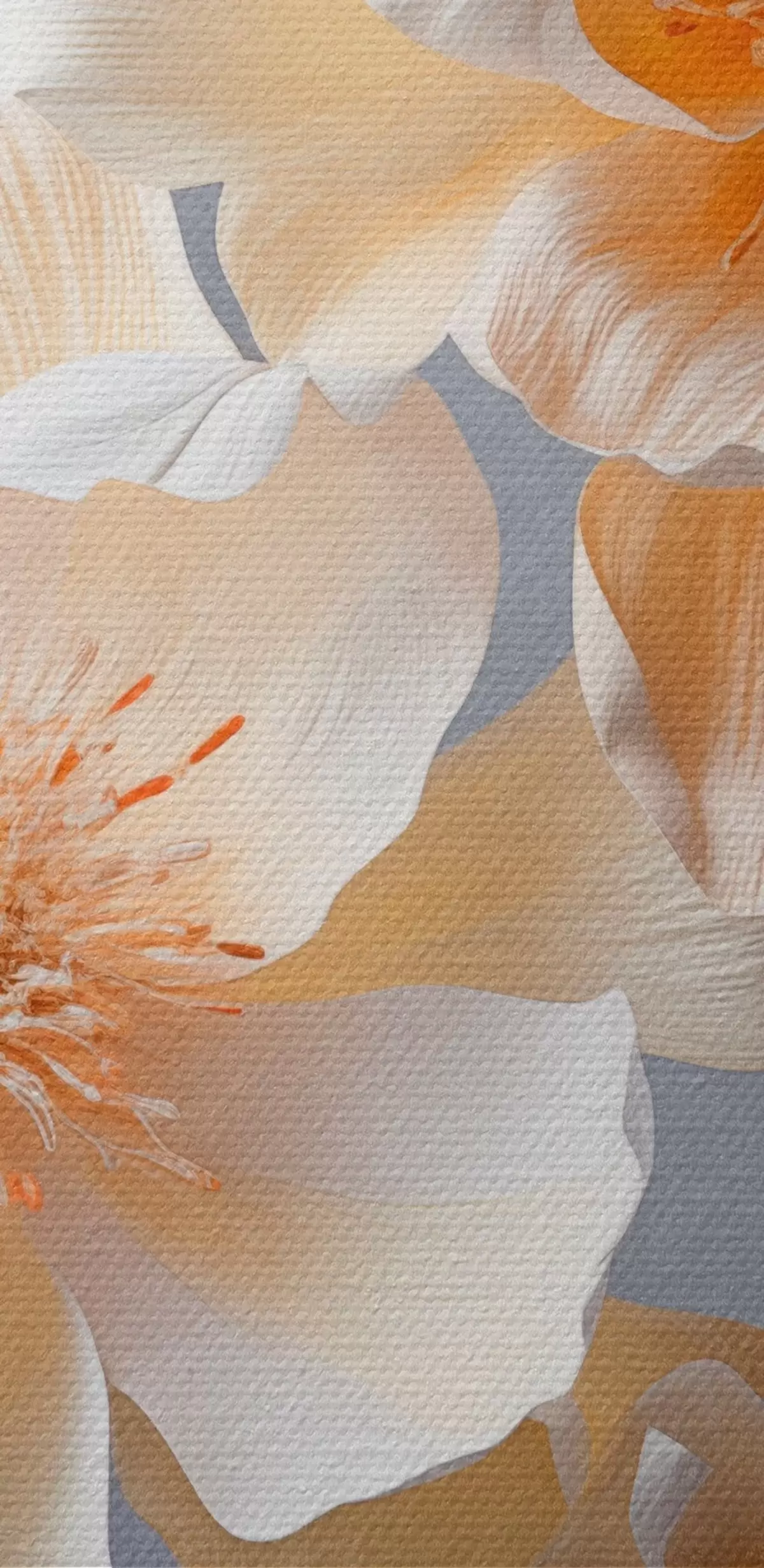 Картина Текстуровані квіти з помаранчевими маточками та помаранчевим листям на сірому тлі, м'яке світло, елегантні, деталізовані, реалістичні Арт. s45181