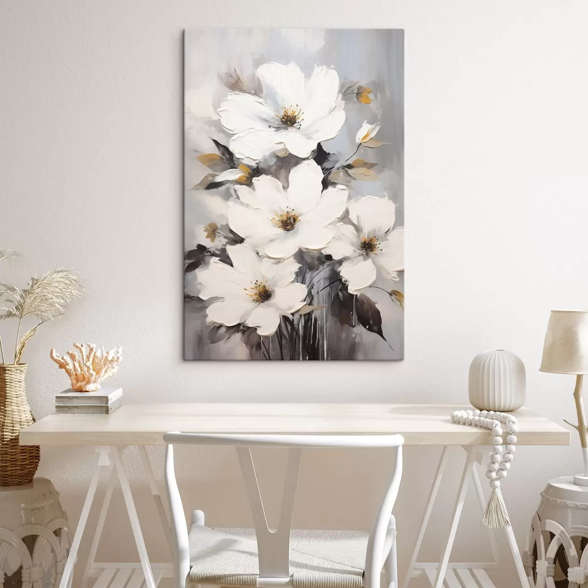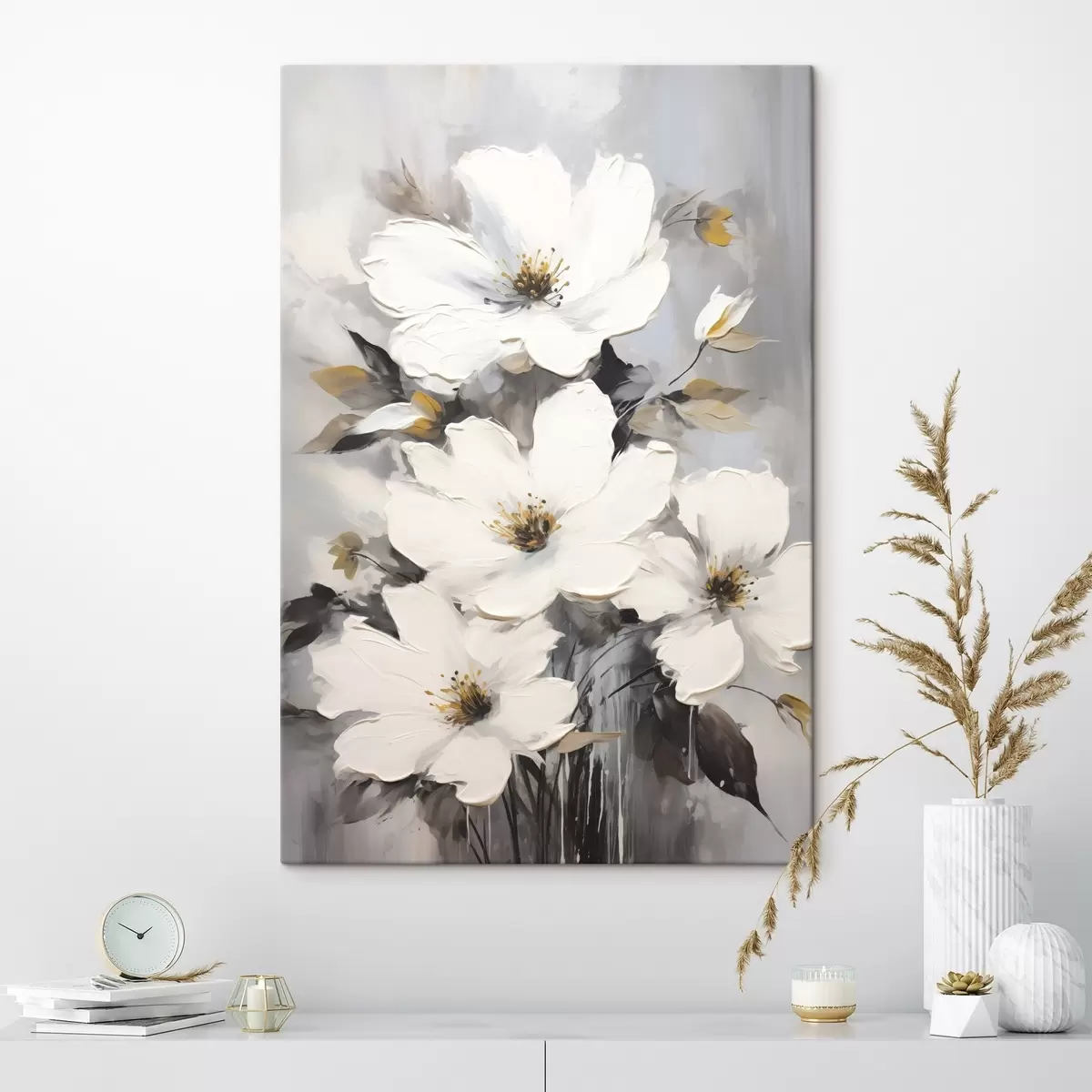 Картина Білі квіти: об'ємний живопис на сірому тлі s45252