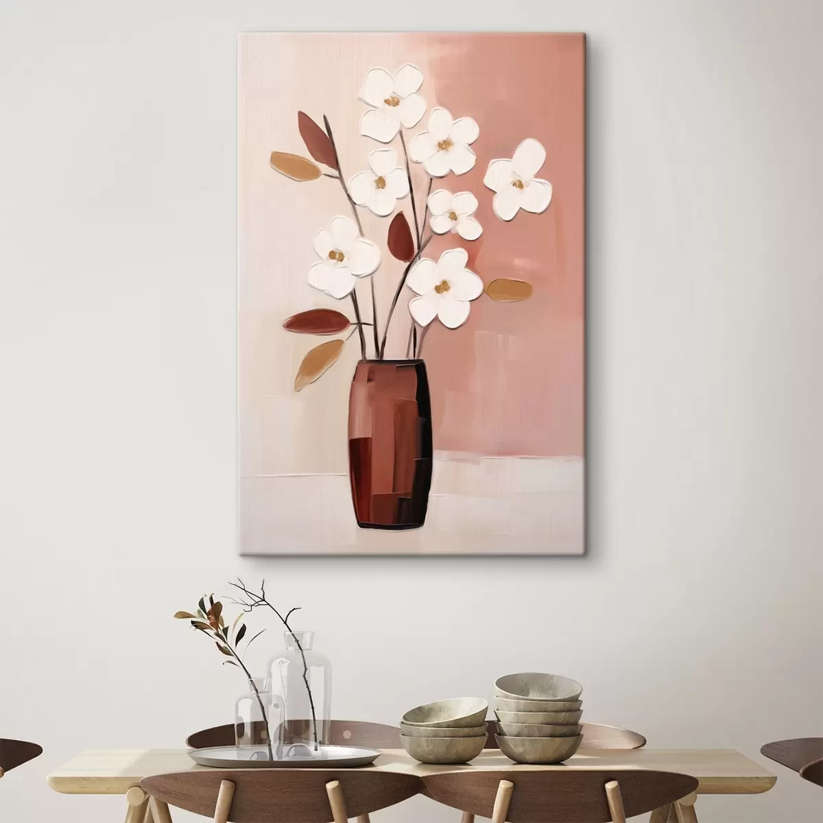 Картина Білі квіти в темній вазі: сучасний флористичний живопис s45255