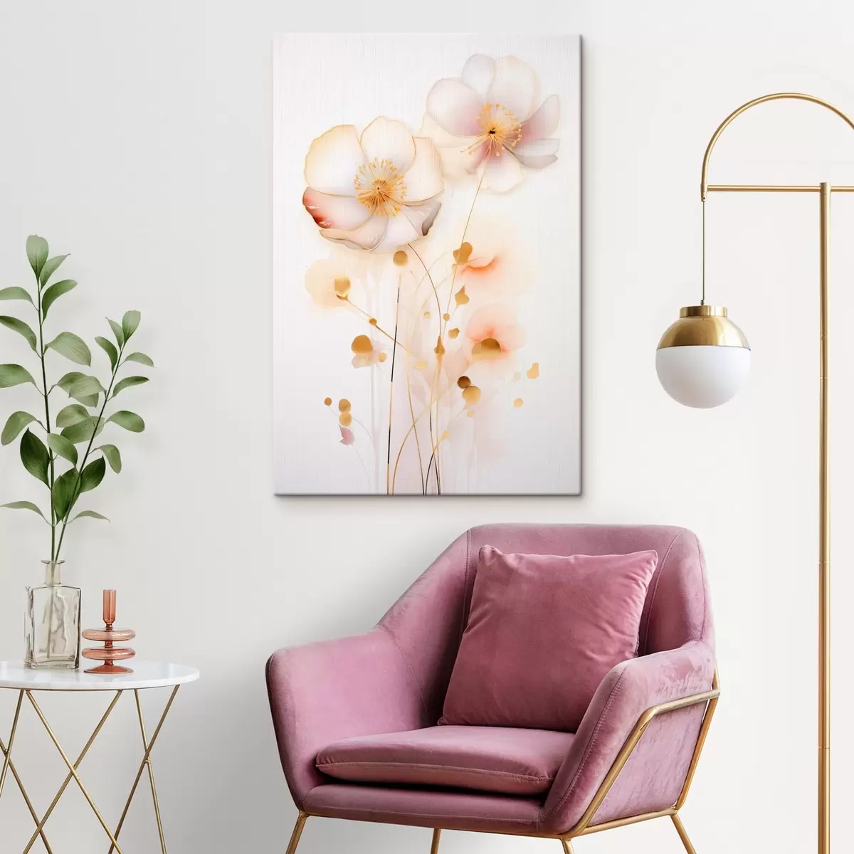 Картина Ніжні напівпрозорі квіти в пастельних відтінках на білому тлі Арт. s45259