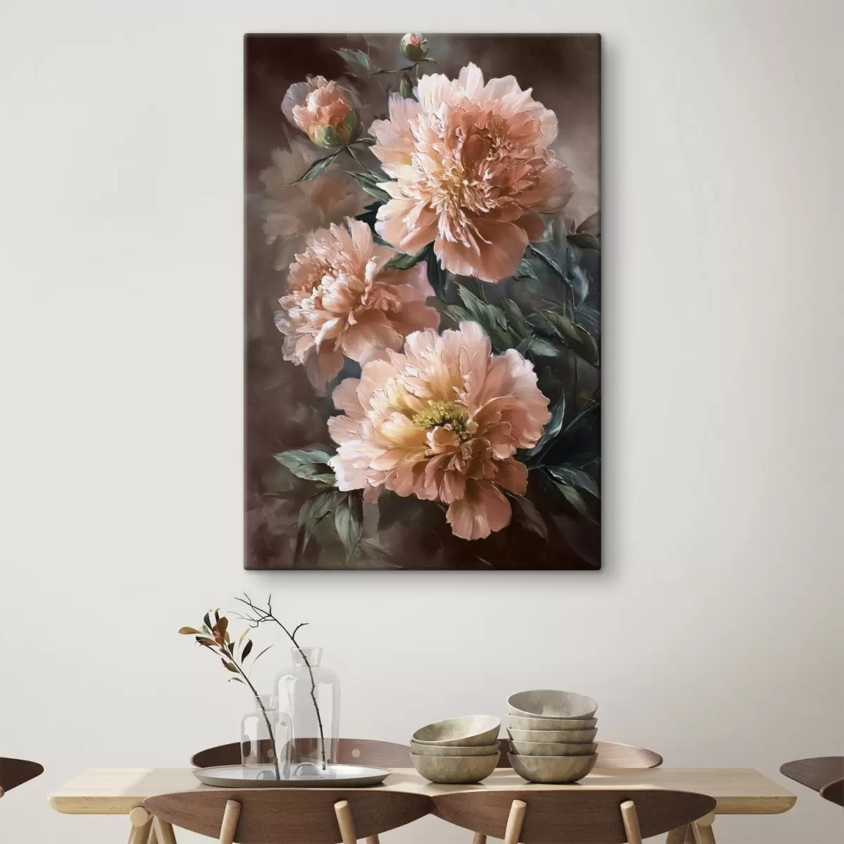 Картина Пишні рожеві півонії на тлі теплих тонів у стилі мазків Арт. s45260