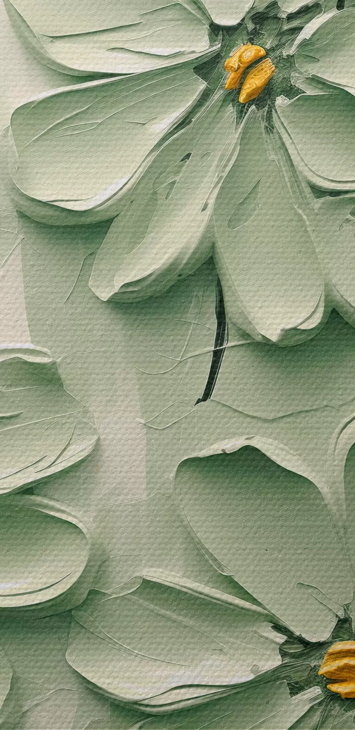 Картина Зелені квіти з жовтими серединками, намальовані густими мазками на світлому тлі Арт. s45265