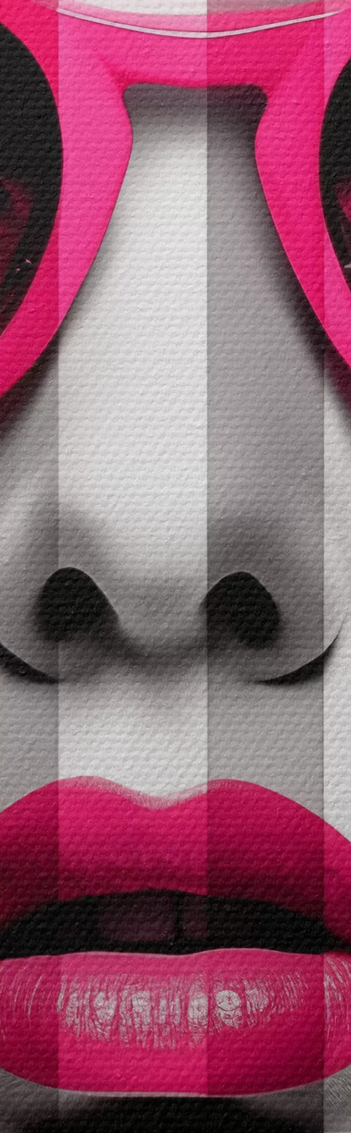 Картина Жінка в рожевих окулярах з чорно-білими смужками s45315