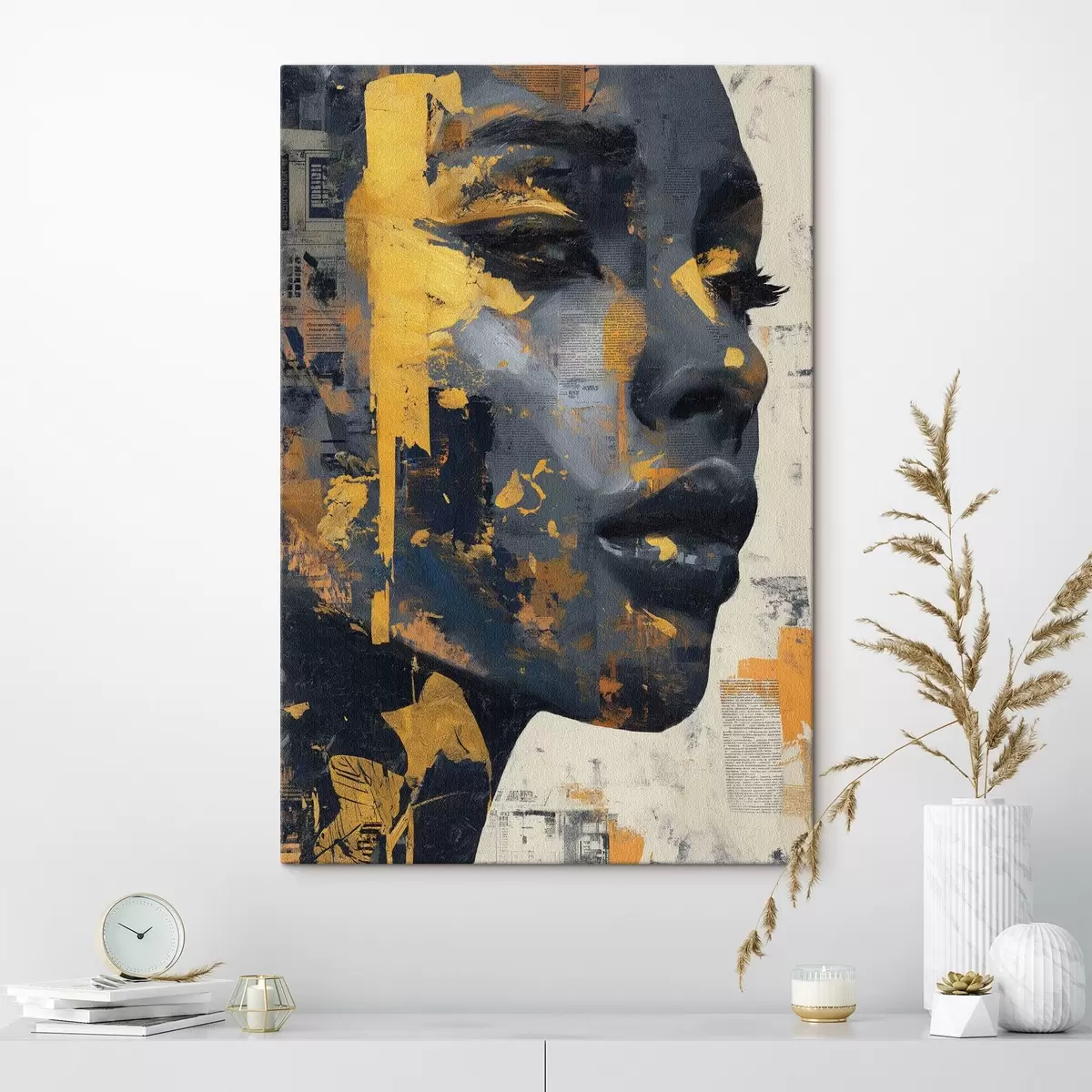 Картина Портрет у змішаній техніці з газетними фрагментами та декоративними мазками Арт. s45420