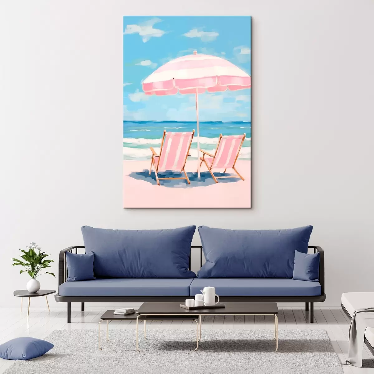 Картина Пляжна парасолька та шезлонги на узбережжі Арт. s45442