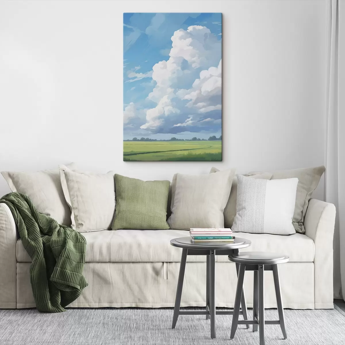 Картина Поле на тлі неба з величезними хмарами Арт. s45453
