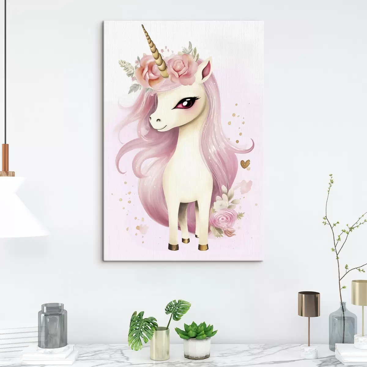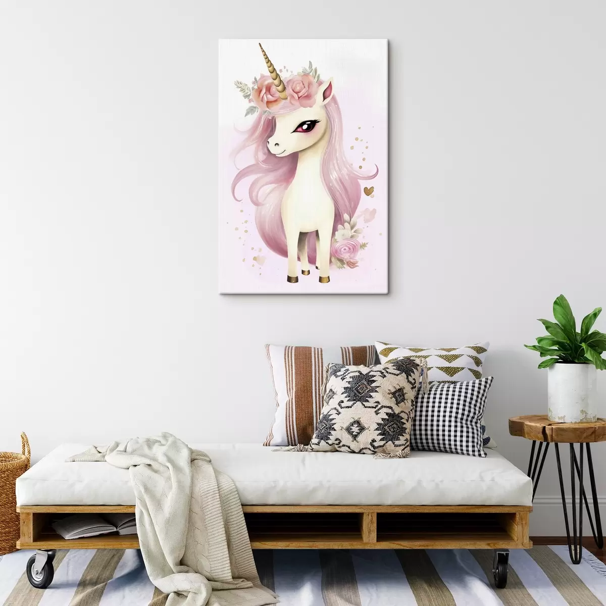 Картина Єдиноріг з рожевою гривою та квітковим вінком s45484
