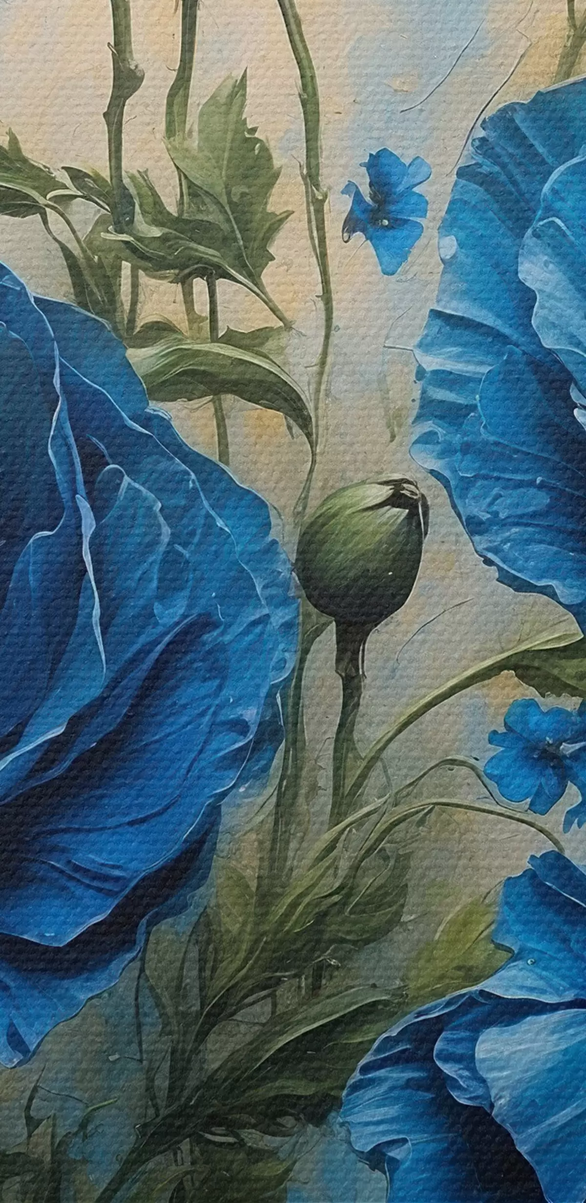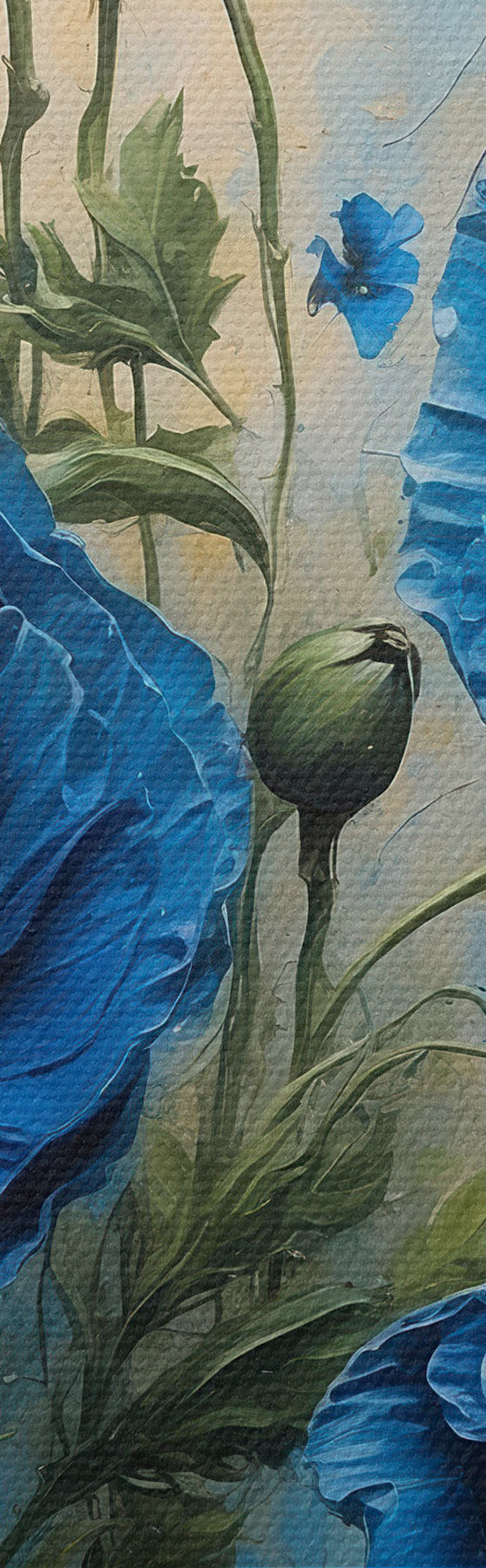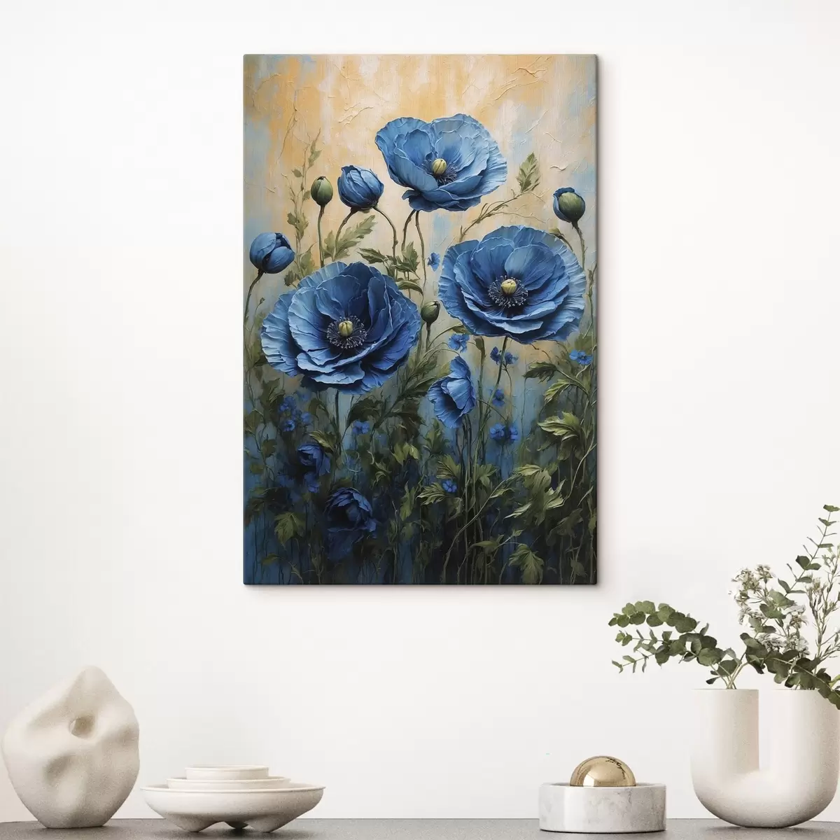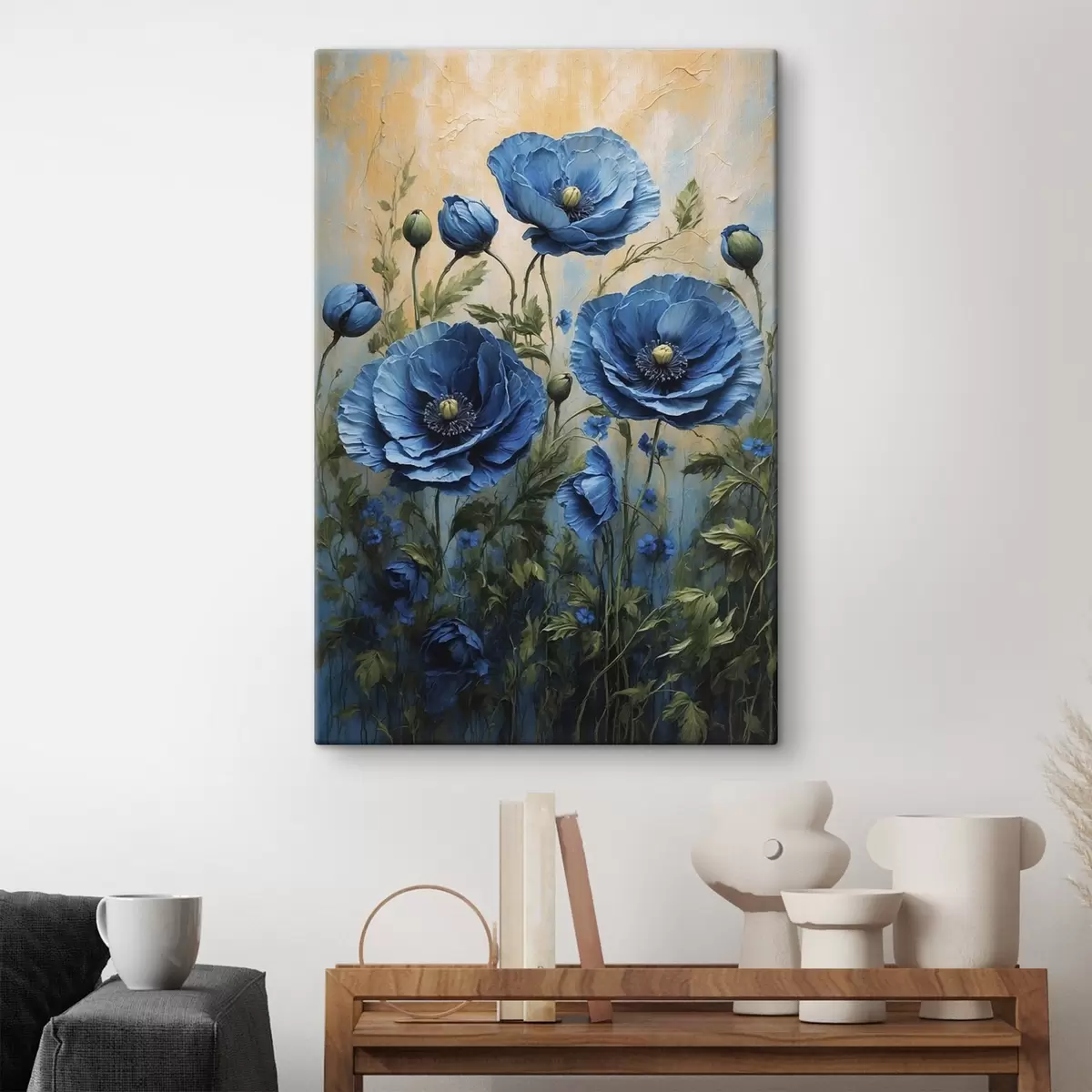 Картина Великі сині маки з бутонами на світлому тлі Арт. s45488