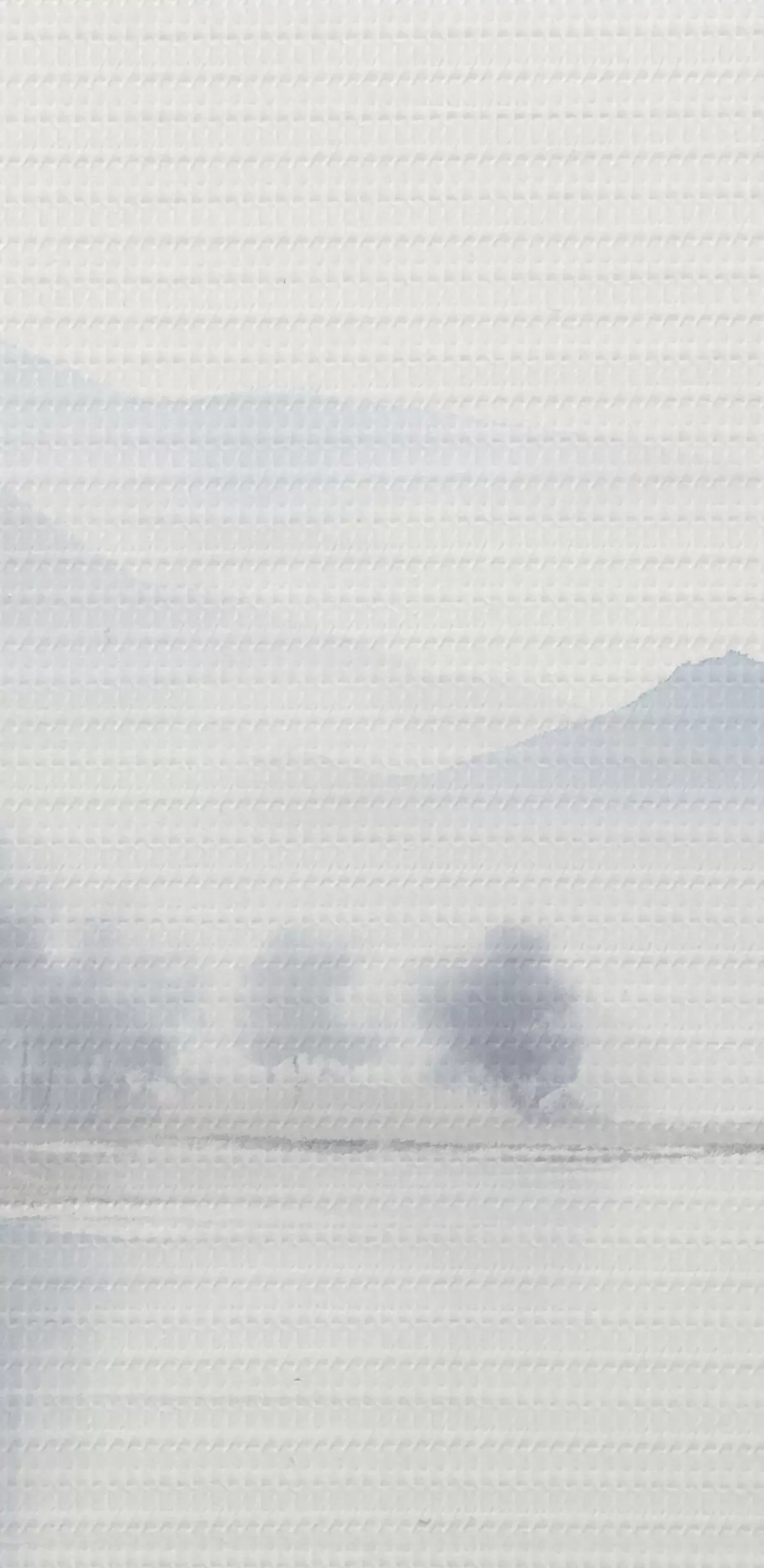 Картина Туманний пейзаж з деревом, горами та птахами s45518
