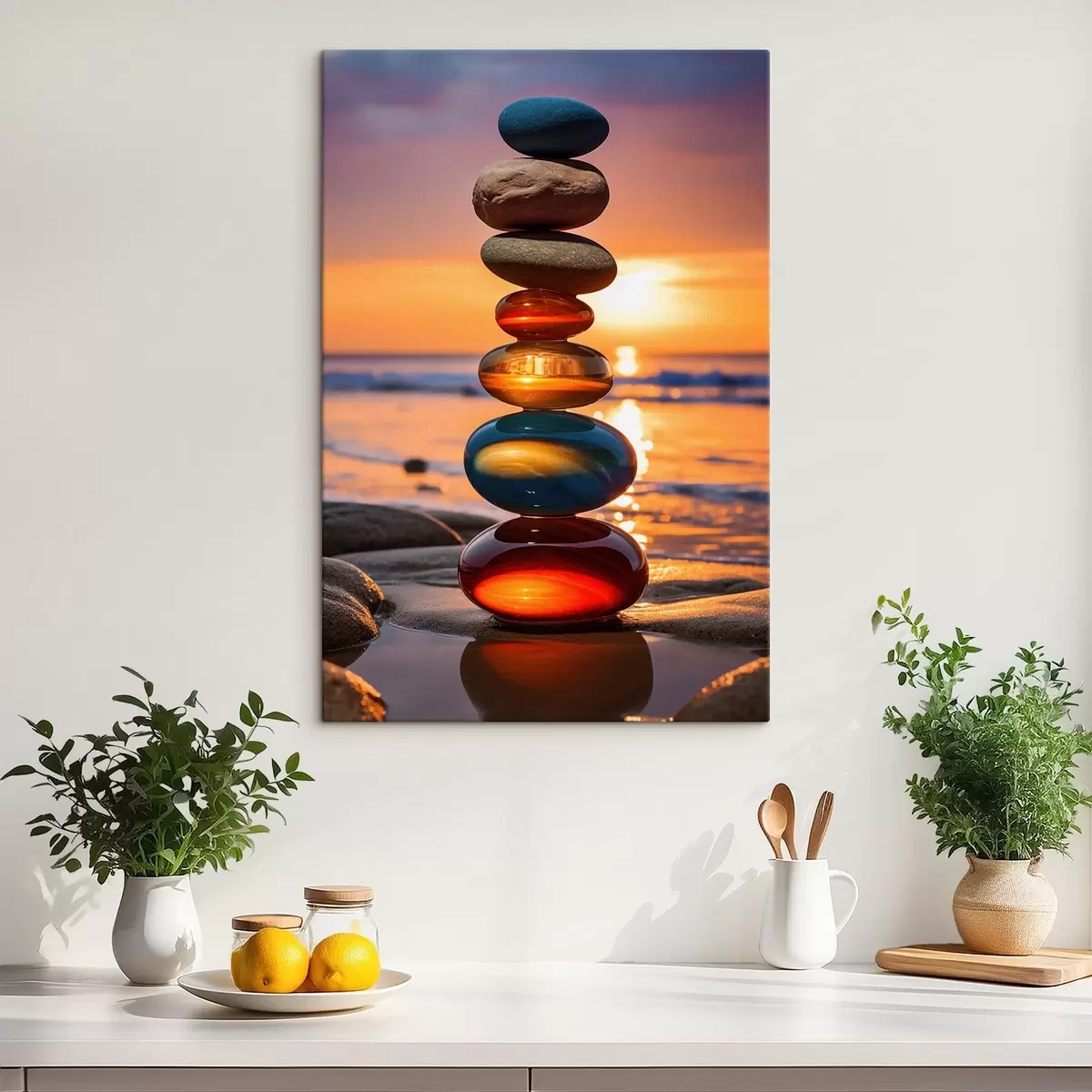 Картина Складені камені на тлі заходу сонця s45520
