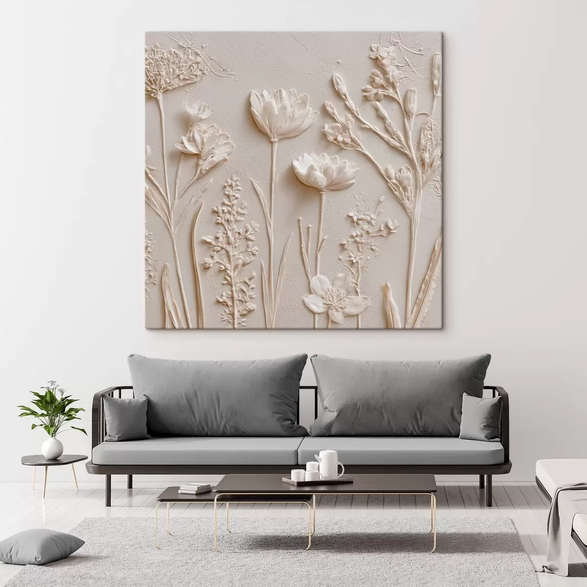Картина Абстрактна композиція: барельєф з квітами на світлому тлі Арт. s45535