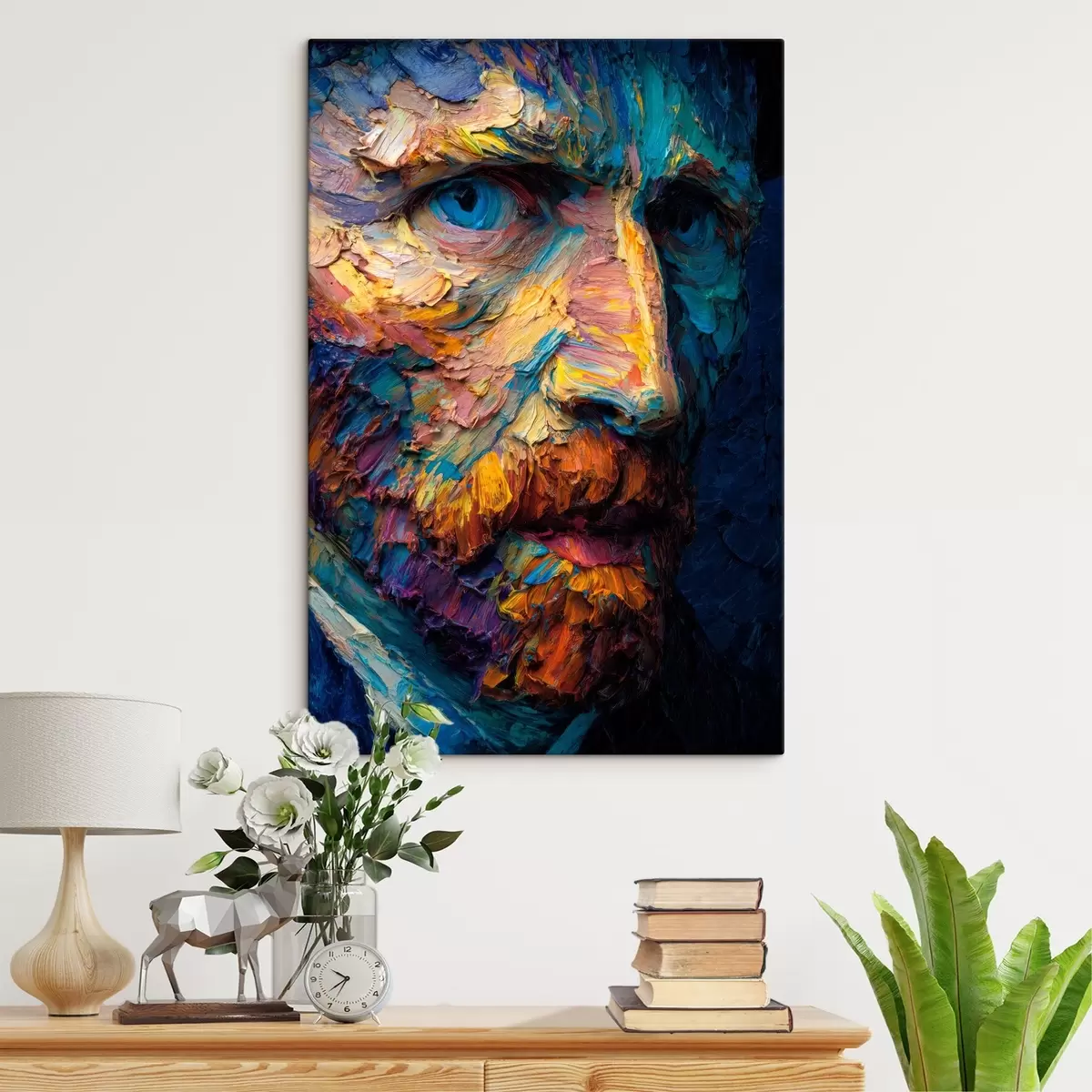 Картина Декоративний портрет Ван Гога: рельєфний розпис у синьо-помаранчевих тонах Арт. s45546
