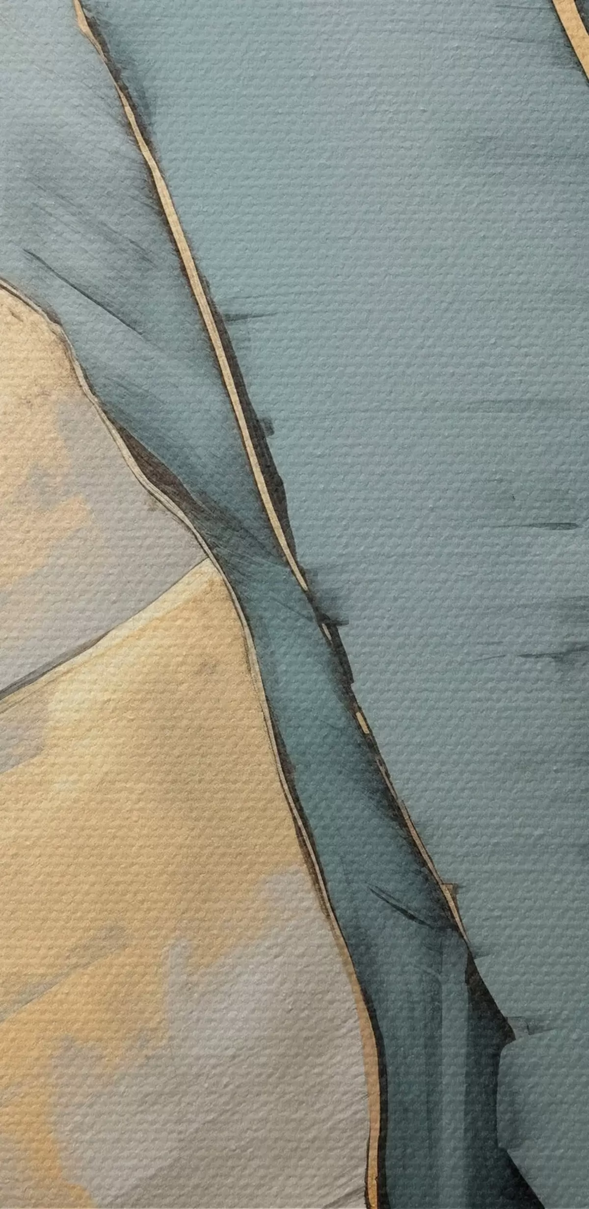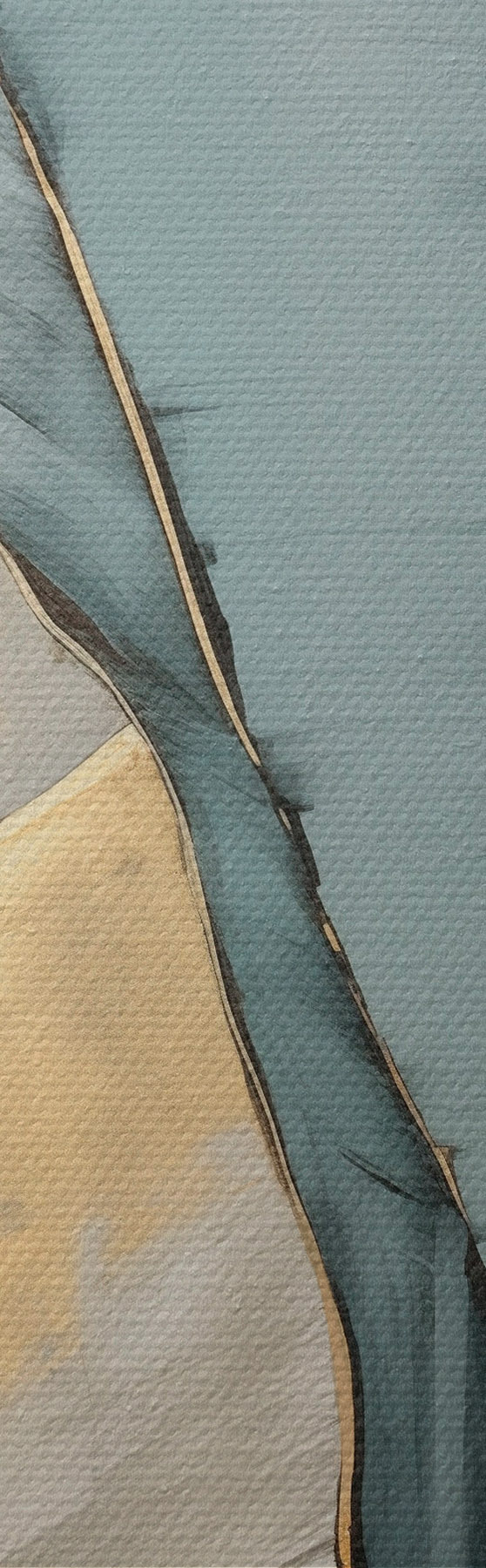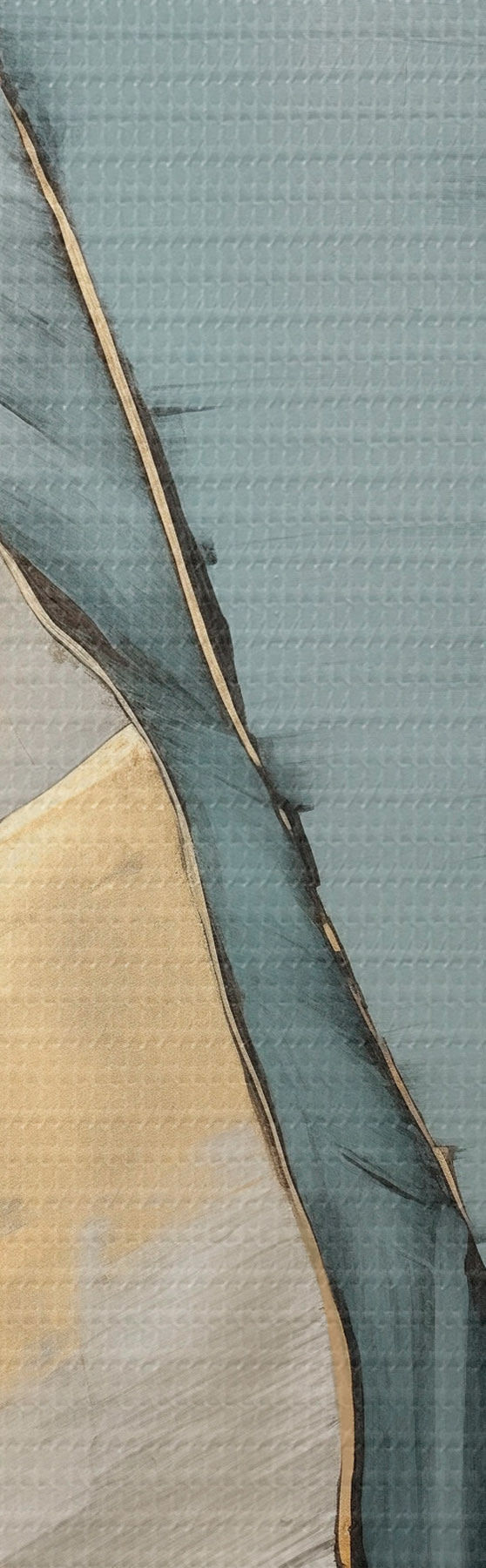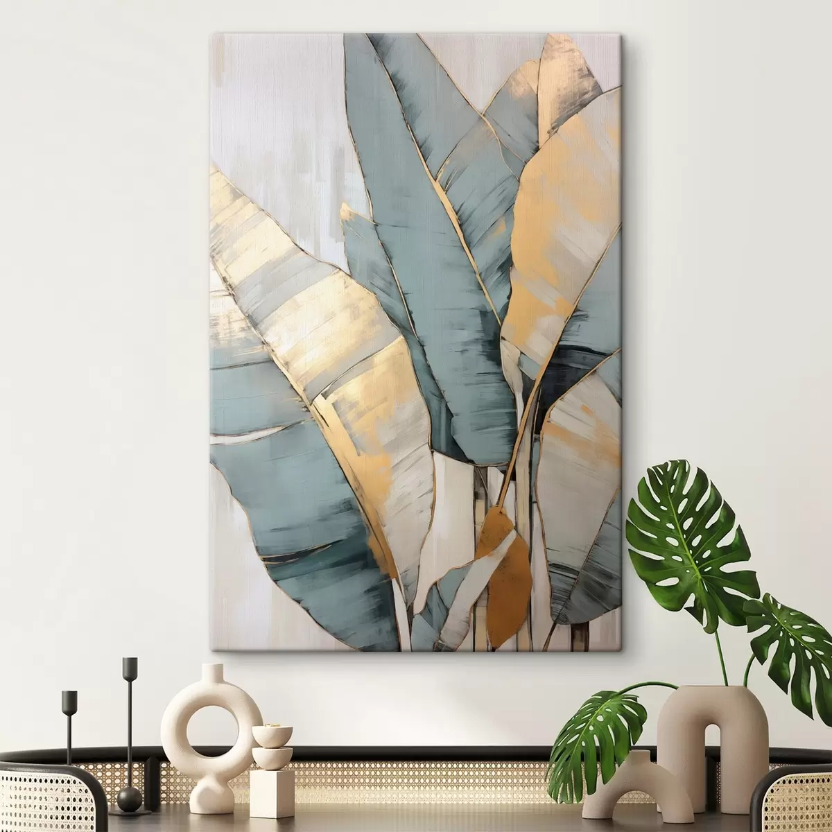 Картина Приглушене синє, сіре та жовте бананове листя з видимими мазками пензля на білому абстрактному тлі Арт. s45552