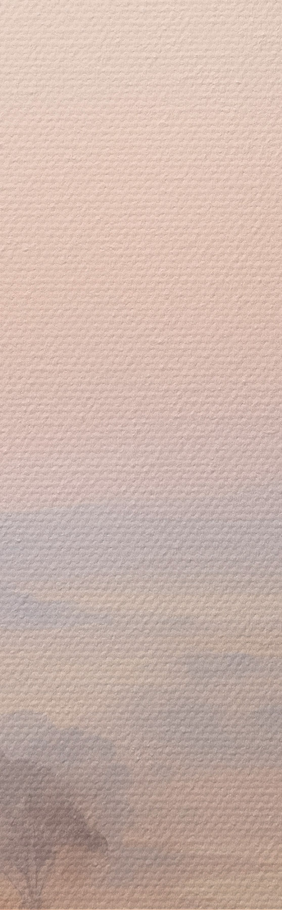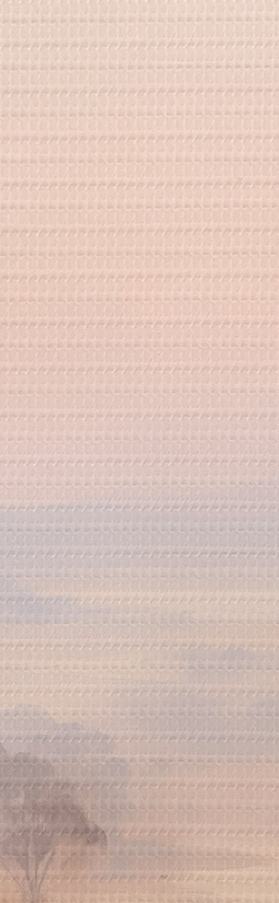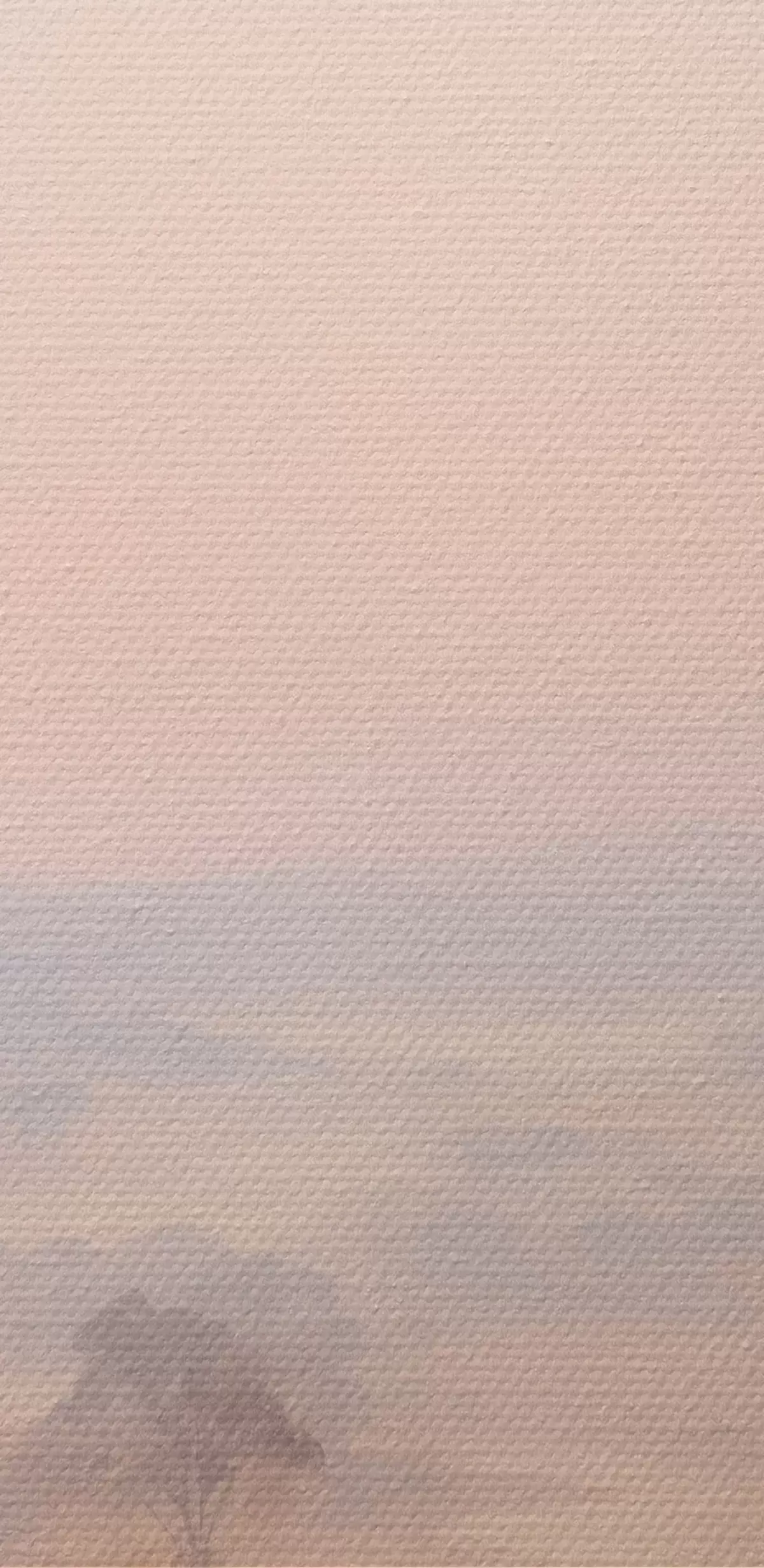 Картина Пейзаж з кущами та деревами в пастельних відтінках рожевого, помаранчевого та коричневого, з горами на задньому плані Арт. s45554