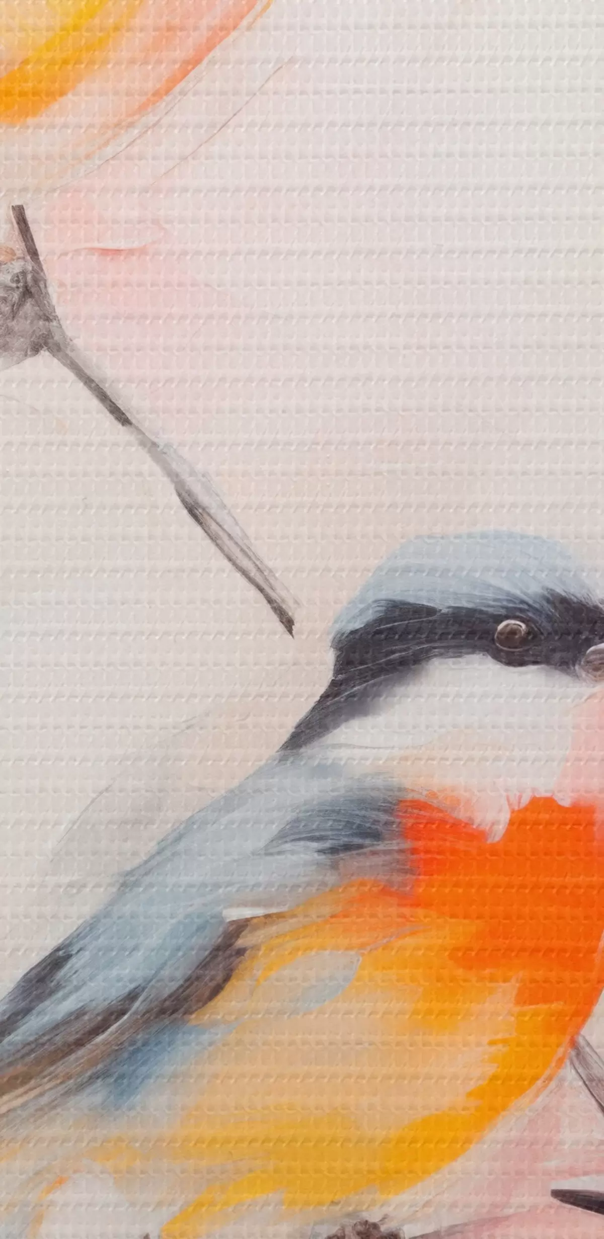 Картина Птахи на гілках, м'які пастельні кольори, світле тло з рожевими та білими відтінками s45577