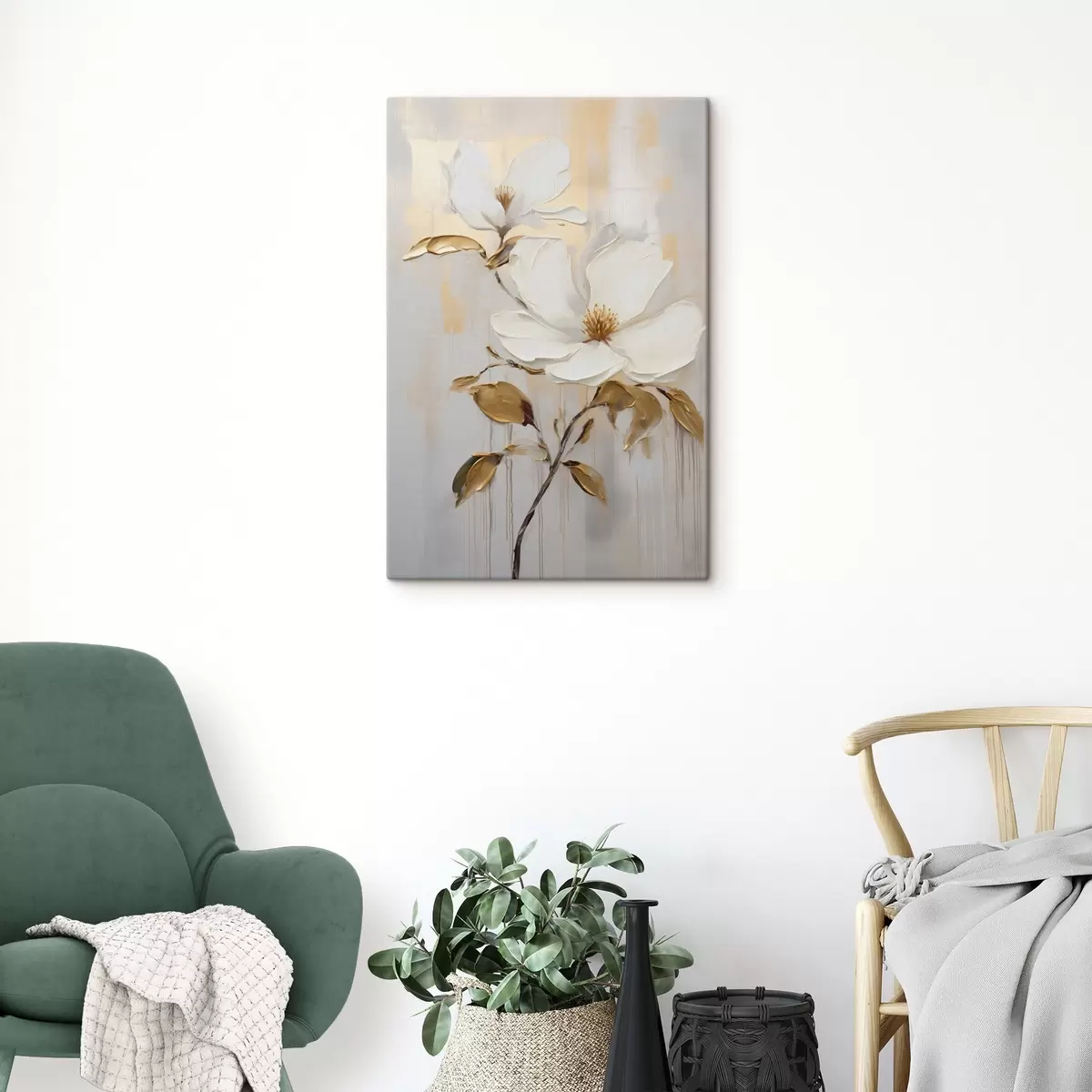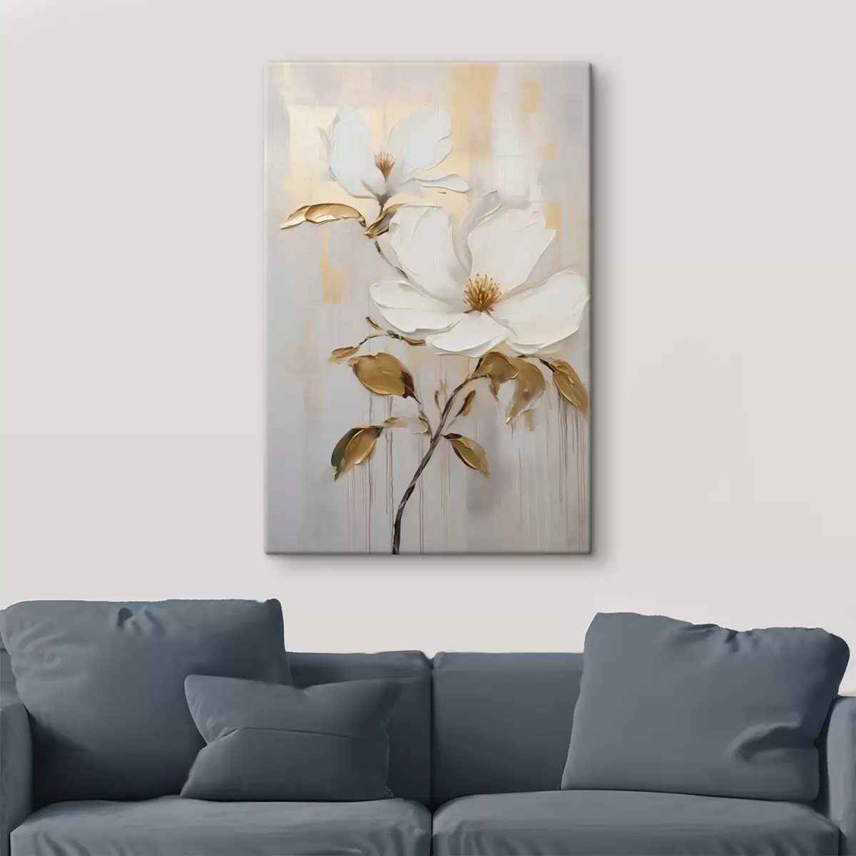 Картина Дві білі квітки з жовто-помаранчевим листям на світлому фоні Арт. s45691