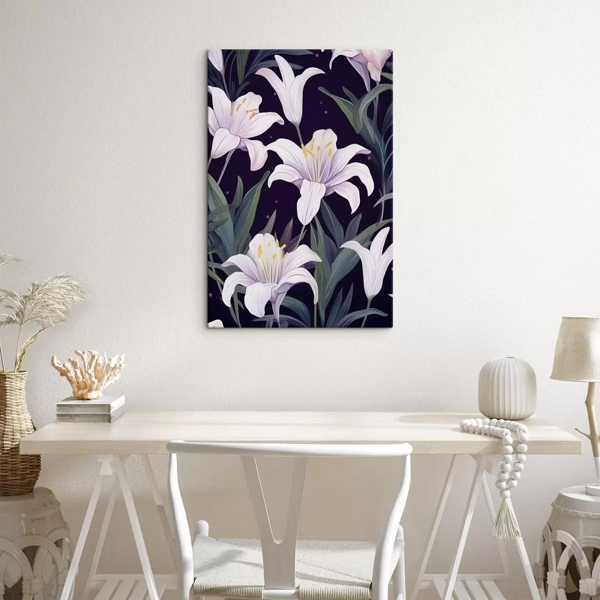 Картина Ніжні лілії на темному тлі з зеленим листям Арт. s45697