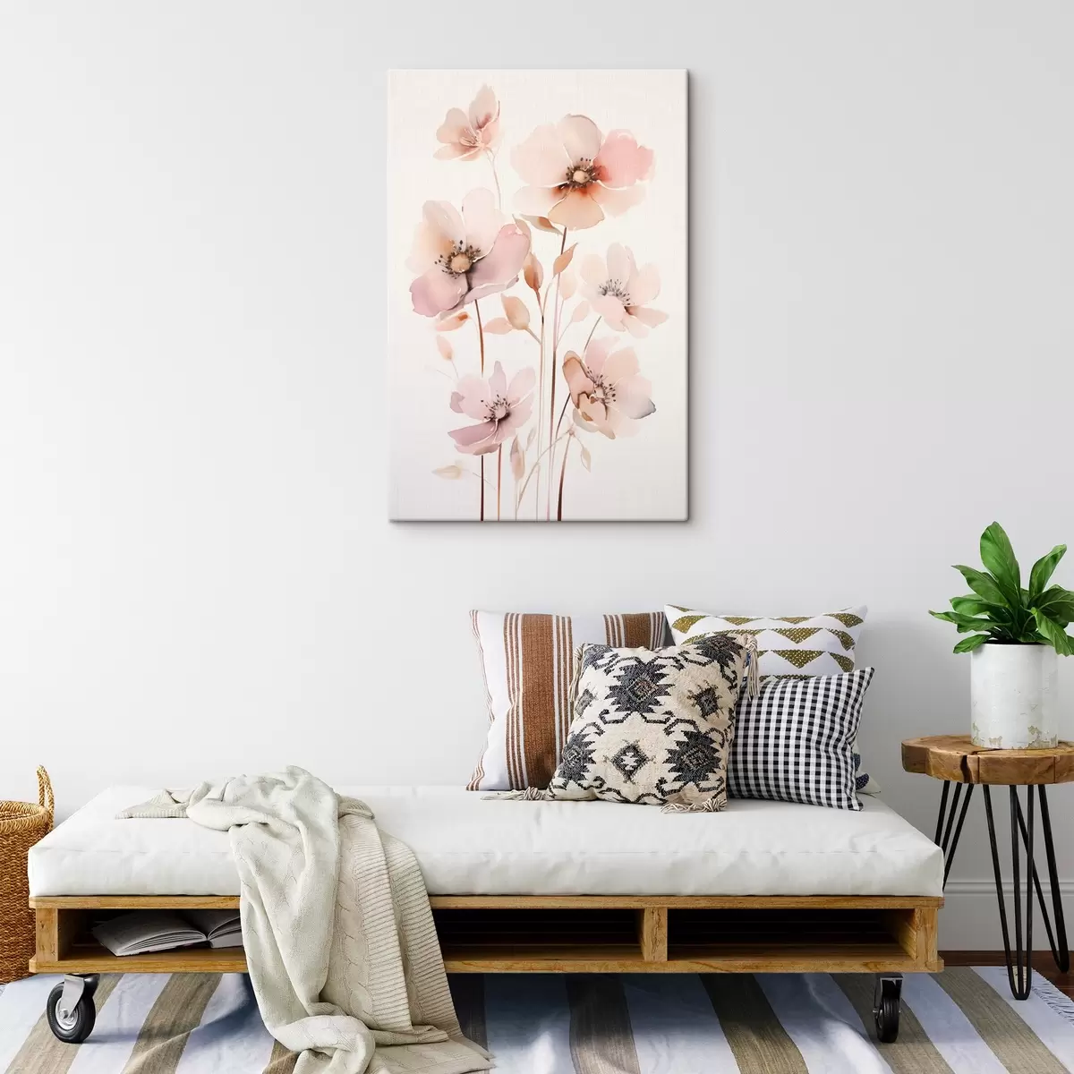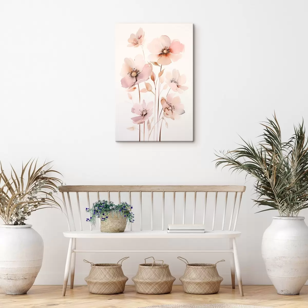 Картина Акварельні рожеві квіти на тонких стеблах s45701