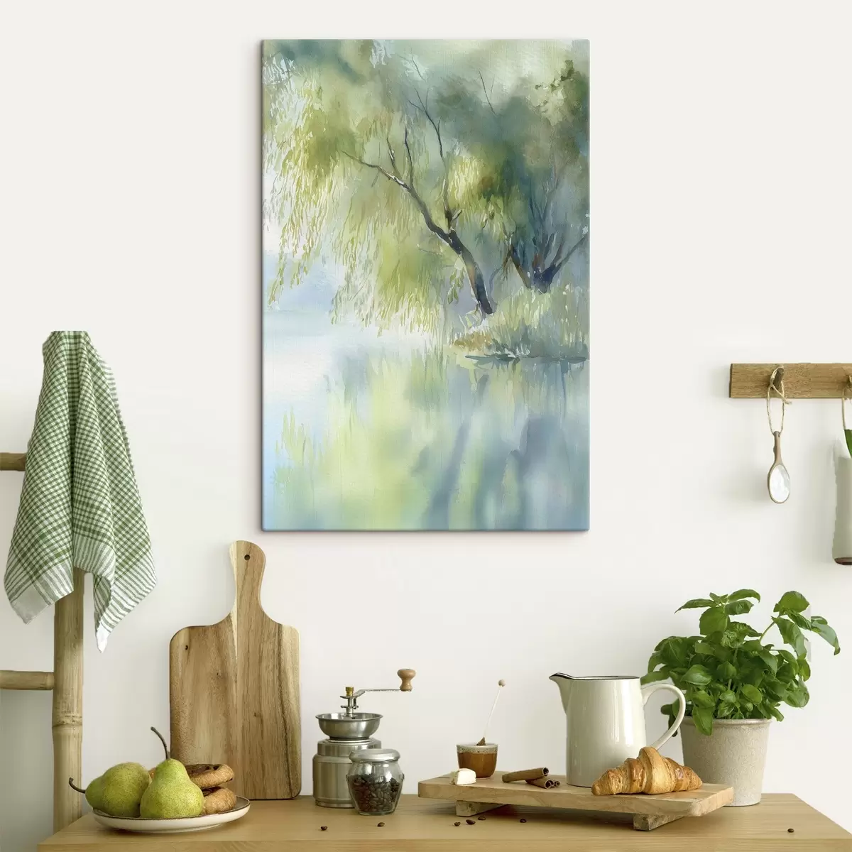 Картина верба на березі озера в акварельному стилі Арт. s45715
