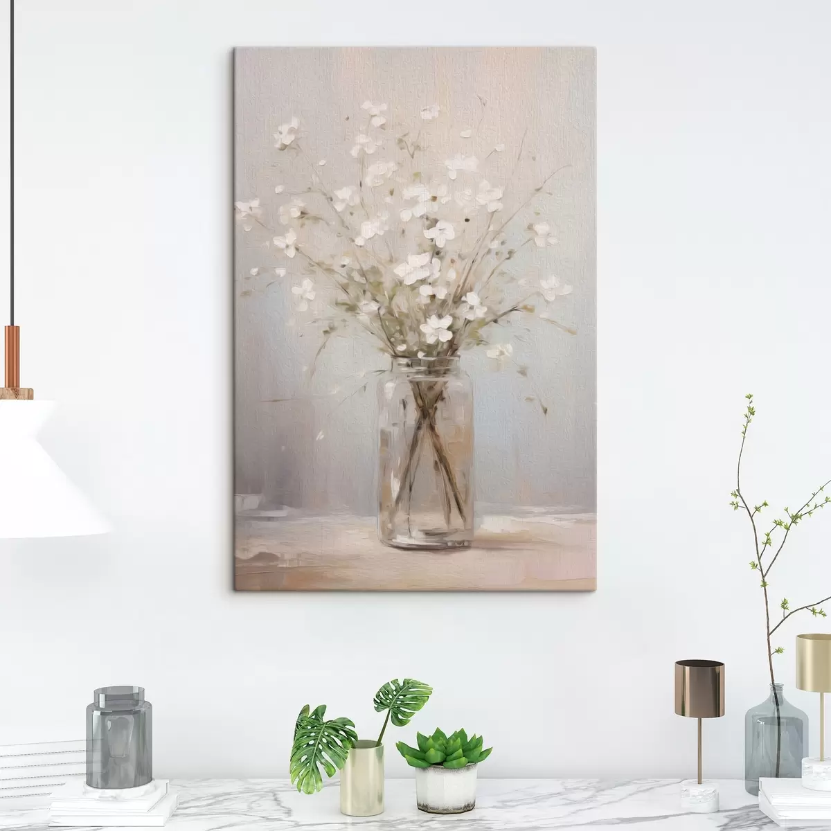 Картина Букет білих квітів у прозорій скляній вазі Арт. s45814