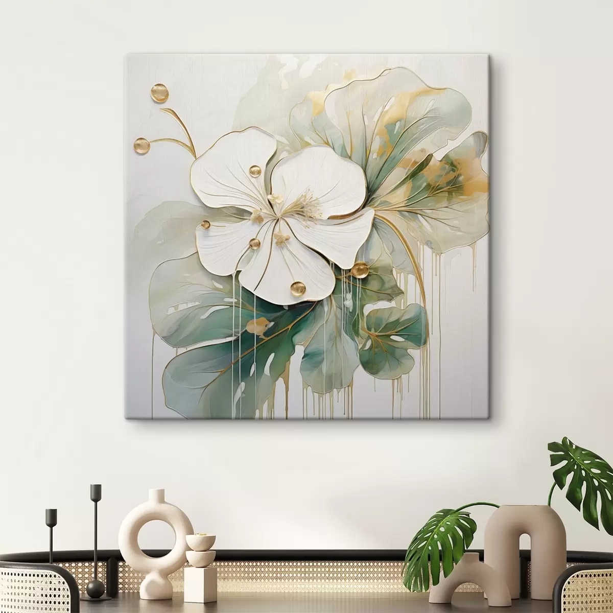 Картина Біла квітка з жовто-помаранчевими деталями та зеленим листям Арт. s45815